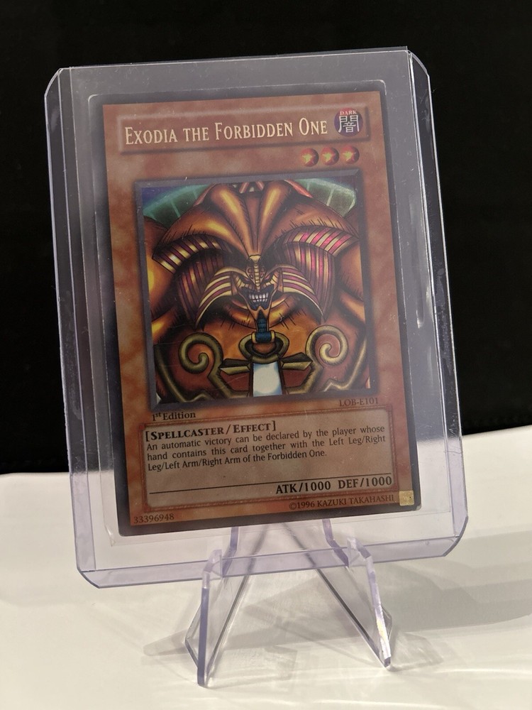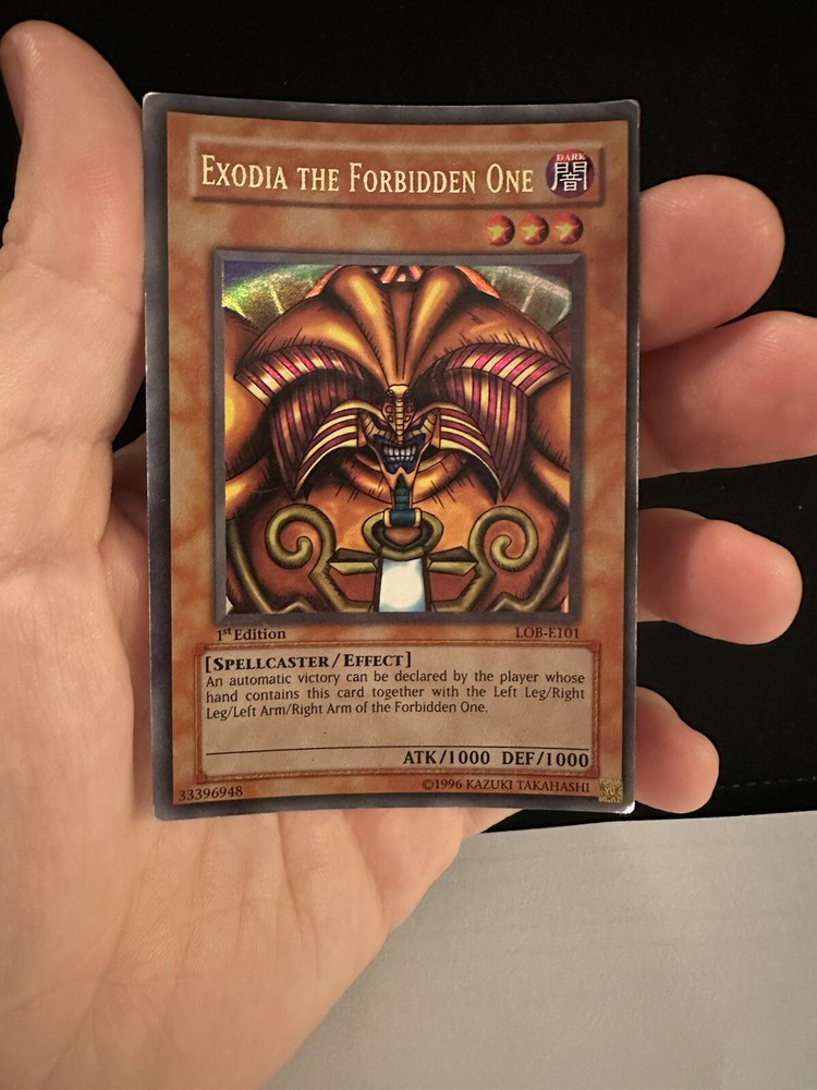Exodia The Forbidden One FIRST EDITION LOB-E101 MP/HP I have taken lots of HD photos for you to determine the condition. Minor scuffs throughout. 1 curled corner top left. Card send sleeved, top loaded and in a card backed envelope. See my other items for sale. Thank you ❤️