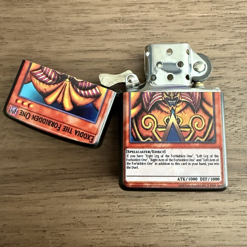 Exodia the Forbidden One Windproof Lighter Summon the power of Exodia! This windproof lighter features epic artwork of the Forbidden One, crafted with all-metal construction and refillable design — perfect for collectors and fans. • Size: 2.28” x 1.54” x 0.51” • Windproof & refillable (lighter fluid not included) • Durable metal build • Includes protective tin Ships without lighter fluid. A bold collectible for anime lovers!