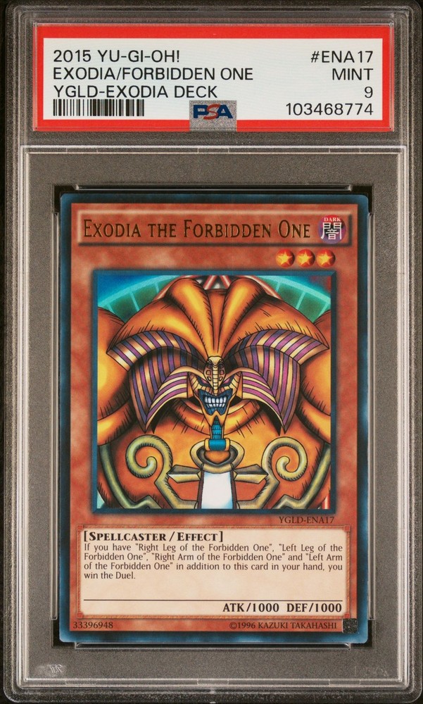 This Exodia card is a must-have for any serious Yu-Gi-Oh! collector! The PSA 9 grade ensures top-notch condition, and the high-quality scan matches the actual card perfectly. Packaged securely in a toploader, it arrives safely. A fantastic addition to any deck or display—highly recommended for fans and collectors alike!