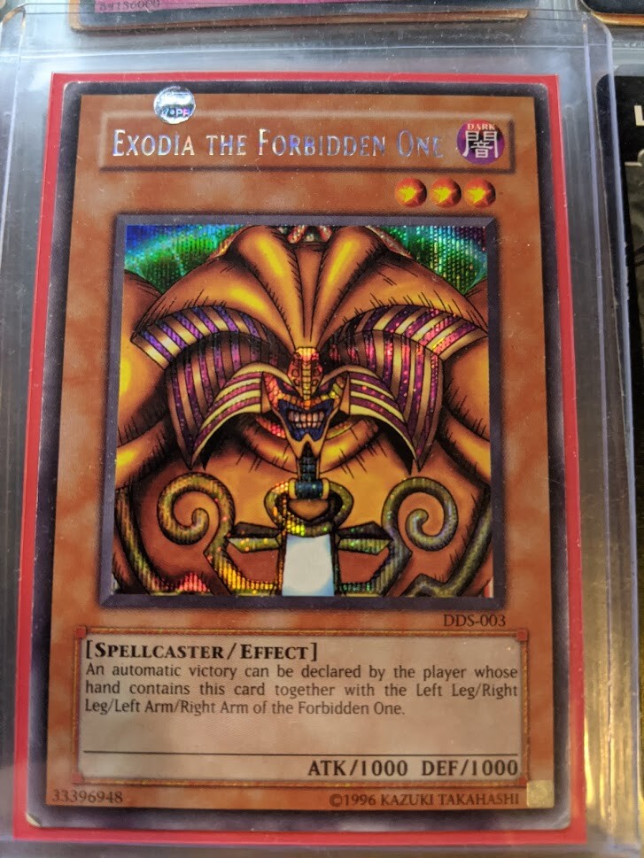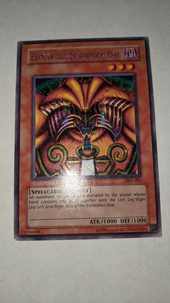 This auction is for an Exodia the Forbidden one card from the Dark Duel Stories Gameboy Game. The item is damaged with edgewear and light denting. I traded for this card at least 15 years ago and have been holding on to it since. I think it's really cool. Maybe you do to. Due to the nature of the product I will not accept returns. I will record myself packaging and shipping the item in case of illegitimate disputes. I am an honest seller and would like to find an honest buyer. I have received several offers which turned out to be scam attempts. Don't waste your time, not falling for them. Open to any and all questions. Thanks for Reading.