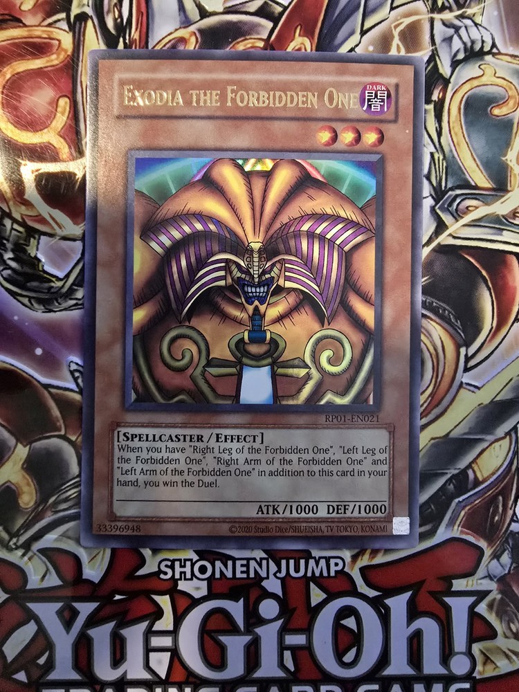 The product is an ultra rare Yu-Gi-Oh! collectible card featuring Exodia the Forbidden One. This card is from the RP01-EN021 set, released in 2002 as part of the Yu-Gi-Oh! TCG. As an Ultra Rare card, it holds a special status among collectors and players for its rarity and value. The card is part of the Unlimited edition, making it a sought-after piece for fans of the game.