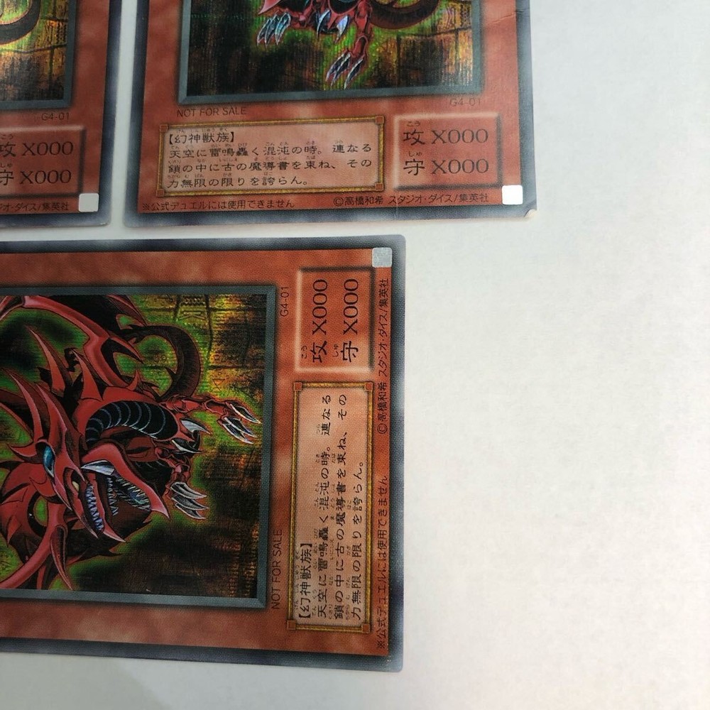 Description Yu-Gi-Oh G4 Slifer the Sky Dragon Secret Rare x3 Set JAPAN Grade : Excellent JAN : Does not apply Model : G4 Secret Rare Appearance : Minor scratches, collector condition Payment We accept eBay managed Payment. Payment is due within 3 days of the auction end. We will ship the item 5 business days after your payment clears. Shipping We will send a product by DHL or EMS Shipping is with tracking Number. Please bid it without worrying. Shipping is only available to the address registered in eBay. Please note that any address not registered in eBay is not acceptable to ship. Shipping is available from Monday to Friday. Weekends are not available because post office is closed. Regarding shipping duration, normally around 1-2weeks Returns It is accepted returns, if it meets following condition. -It is within 60 days after arrival of the item. -The item has an obvious problem that was not mentioned in the listing description. -The returned items must be the original condition. And if you keep above condition, the return shipping cost is free. (Seller is covering the cost) If you would like to return item, at first please contact us. International Buyers - Please Note: * *Import duties, taxes and charges are not included in the item price or shipping charges.These charges are the buyer's responsibility. * Please check with your country's customs office to determine what these additional costs will be prior to bidding/buying. * These charges are normally collected by the delivering freight (shipping) company or when you pick the item up - do not confuse them for additional shipping charges.
