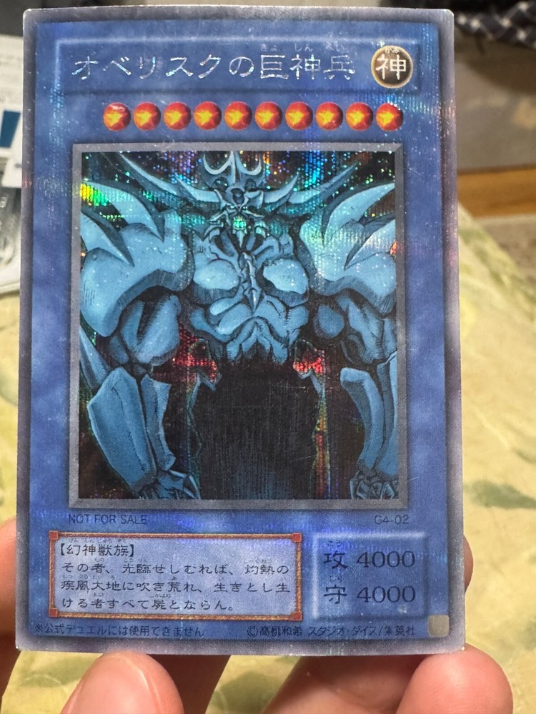 This YuGiOh! Egyptian Gods set is a must-have for collectors! Slifer, Obelisk, and Ra look fantastic—the blue card is near mint, the yellow has minor lines, and the red has slight corner creases. Still, all three are in great shape overall. Perfect for fans of the classic anime or serious duelists!