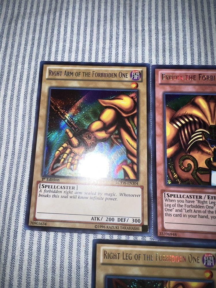 Exodia the forbidden one is unlimited and every other card is 1st Ed. Every card is M/NM condition.