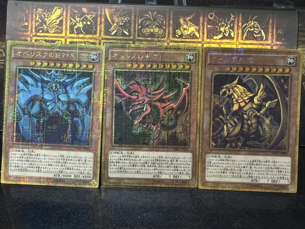 This complete set of Yu-Gi-Oh! Egyptian God Cards in stunning Millennium Gold Rare is a must-have for any collector! The cards arrive in near-mint condition with eye-catching holographic foil that makes them pop. Slifer, Obelisk, and Ra look absolutely majestic, just like in the anime. The quality is top-notch, and they feel premium in hand. Whether you're a duelist or a fan, this set delivers on both nostalgia and value. Highly recommend for anyone looking to own these iconic cards!