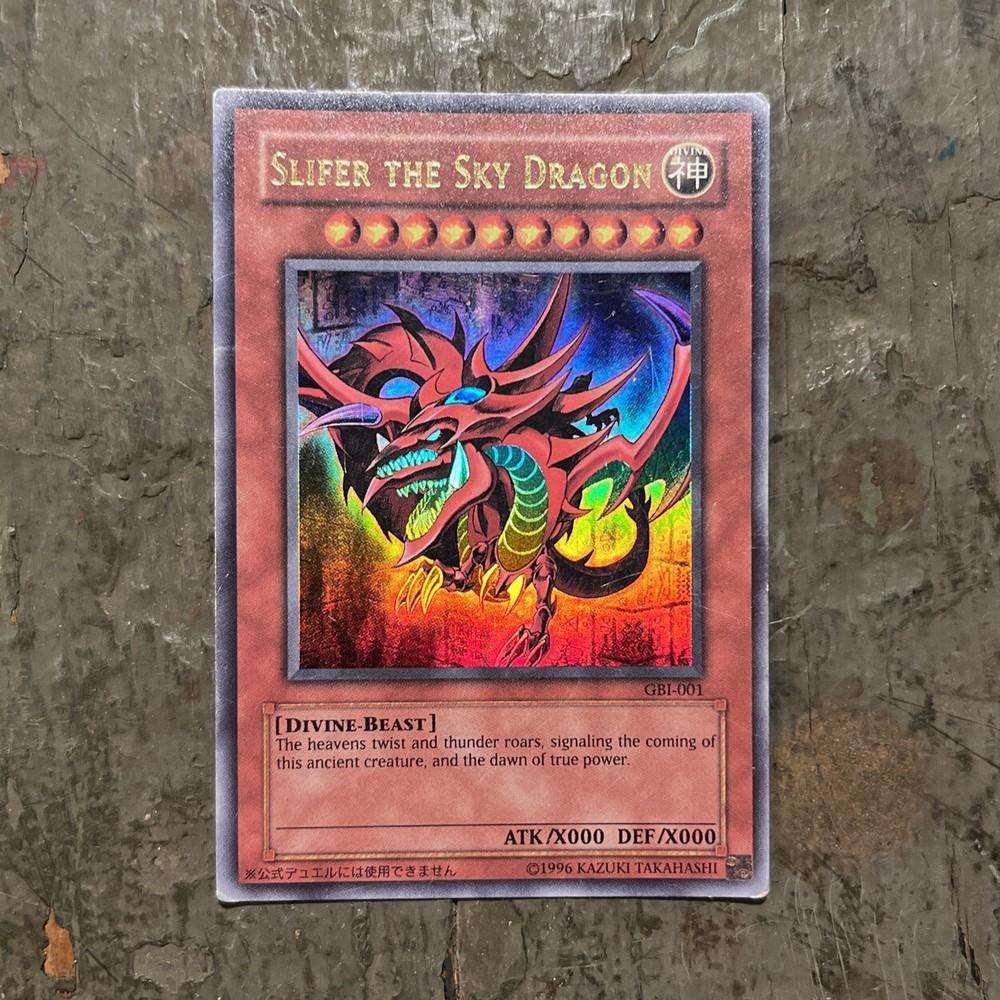 RARE & MINTY 1996 YuGiOh GOD CARD Slifer the Sky Dragon (Comes with protective card sleeve) IVE HAD THIS SINCE OPENING THE ORIGINAL PACKAGING IN KINDERGARTEN!!!
