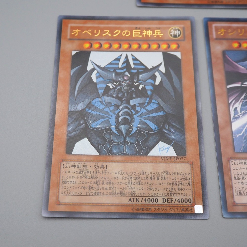 YuGiOh Obelisk Slifer Ra VJMP-JP046 JP037 JP064 Ultra Promo M-NM Japanese n291 Description Condition : MINT~ Near MINT (Please check the photos) [ MINT > Near MINT > Excellent > Very Good > Good > Poor ] Include : The Winged Dragon of Ra, Obelisk the Tormentor, Slifer the Sky Dragon Edition : VJMP-JP037, VJMP-JP046, VJMP-JP06 Rarity : Ultra Rare Shipping [More Than Total $80+] Free Shipping!!! By Japan Post with Tracking Number. Shipping Fee is a flat rate of $6. Free conbined shipping for 2 or more!! International Buyers - Please Note: Import duties, taxes, and charges are not included in the item price or shipping cost. These charges are the buyer's responsibility. Please check with your country's customs office to determine what these additional costs will be prior to bidding or buying.