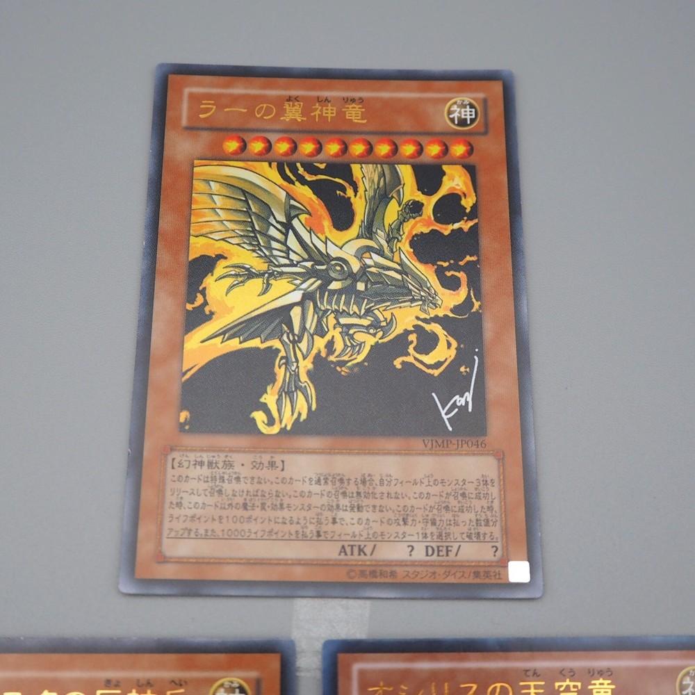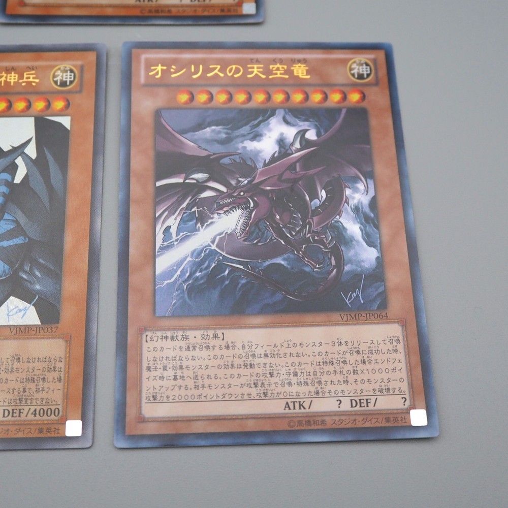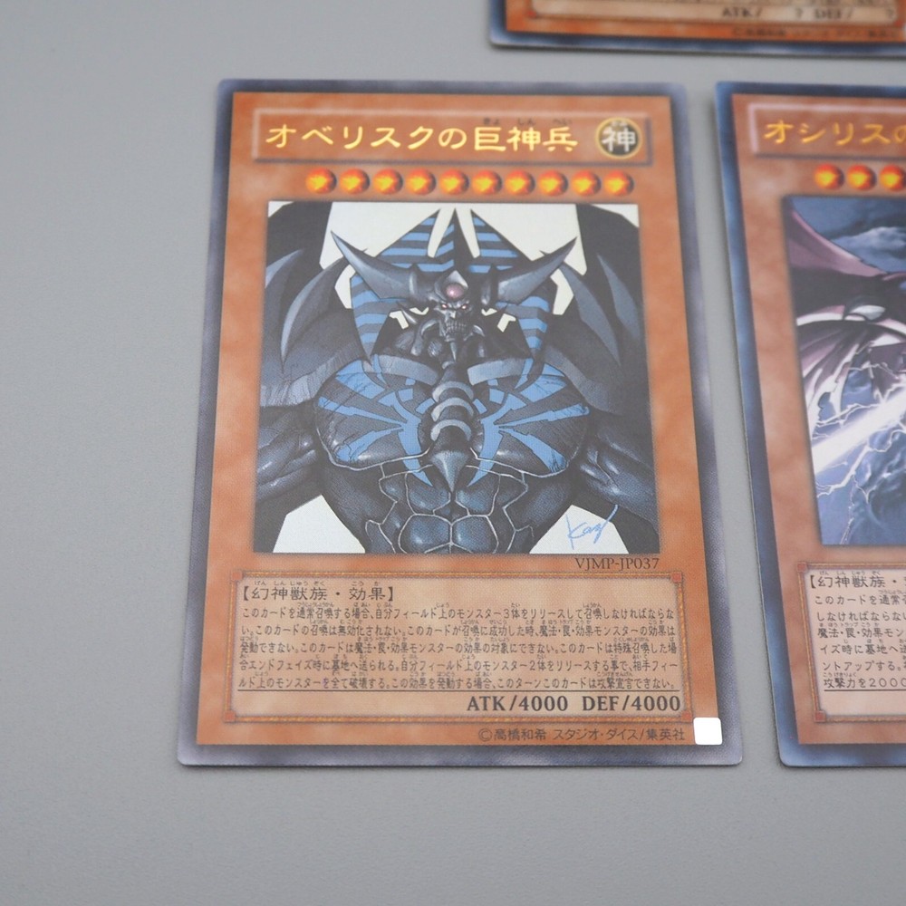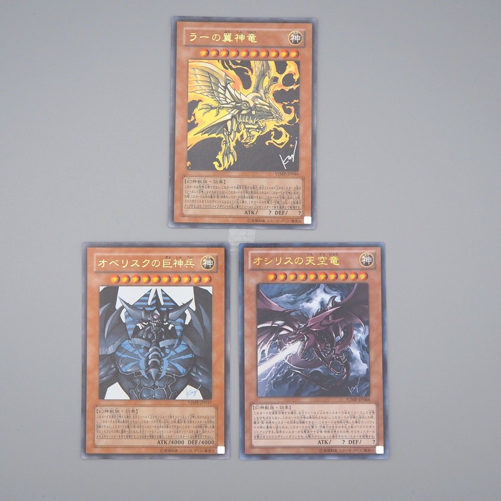 YuGiOh Obelisk Slifer Ra VJMP-JP046 JP037 JP064 Ultra Promo NM-EX Japanese n290 Description Condition : Near MINT~Excellent (Please check the photos) [ MINT > Near MINT > Excellent > Very Good > Good > Poor ] Include : The Winged Dragon of Ra, Obelisk the Tormentor, Slifer the Sky Dragon Edition : VJMP-JP037, VJMP-JP046, VJMP-JP06 Rarity : Ultra Rare Shipping [More Than Total $80+] Free Shipping!!! By Japan Post with Tracking Number. Shipping Fee is a flat rate of $6. Free conbined shipping for 2 or more!! International Buyers - Please Note: Import duties, taxes, and charges are not included in the item price or shipping cost. These charges are the buyer's responsibility. Please check with your country's customs office to determine what these additional costs will be prior to bidding or buying.