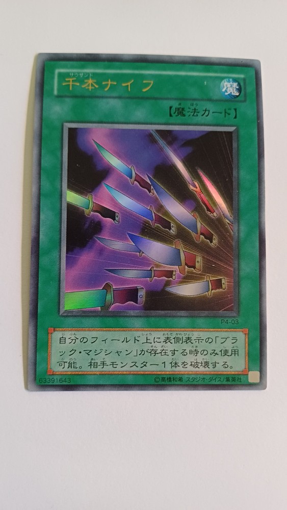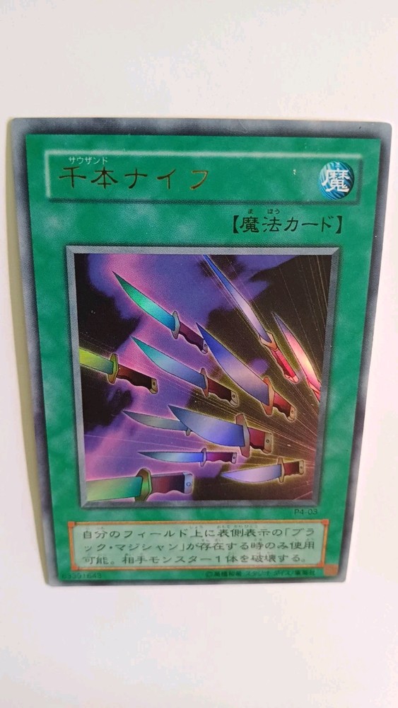 Yu-Gi-Oh! P4-03 Thousand Knives Premium Pack 4 OCG Pack Fresh NM Japanese OCG is a rare find for collectors of the Yu-Gi-Oh! Trading Card Game. This Premium Pack card features Exodia the Forbidden One, a highly sought-after card known for its powerful abilities. Manufactured by Konami, this card is part of the Premium Pack set, making it a valuable addition to any collection. Perfect for fans of the game looking to enhance their deck with a legendary card. Grab this Japanese OCG pack fresh card in near mint condition before it's gone!