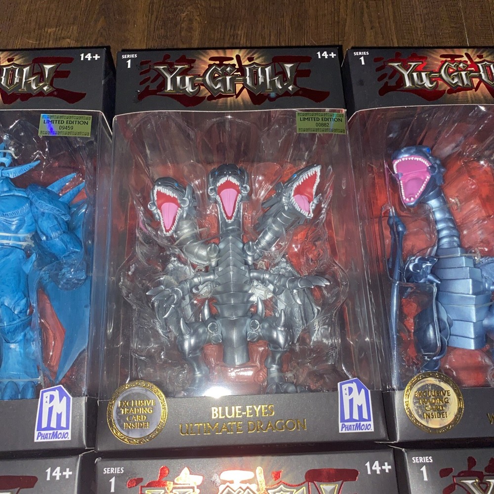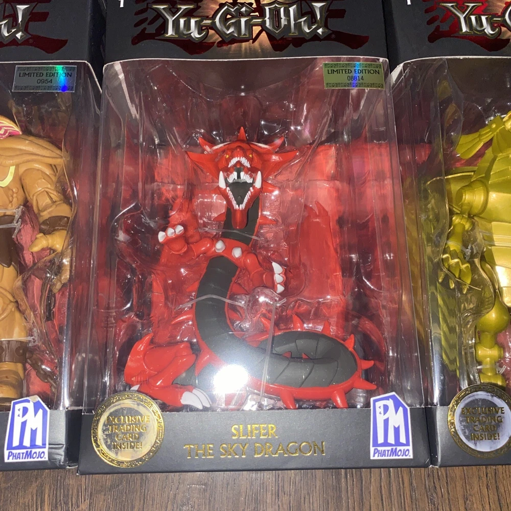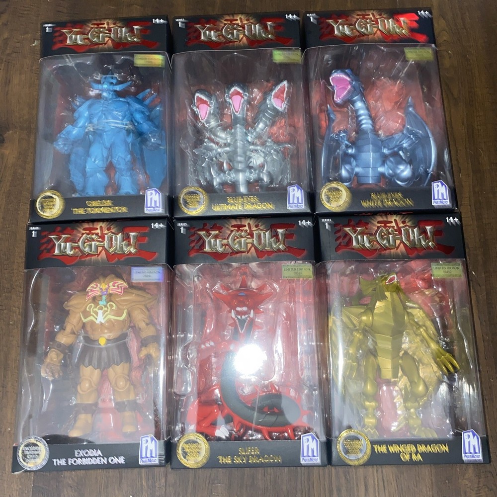 Includes The Wing Dragon of Ra, Blue-Eyes White Dragon, Slifer The Sky Dragon, Exodia The Forbidden One, Blue Eyes Ultimate Dragon, Obelisk The Tormentor.