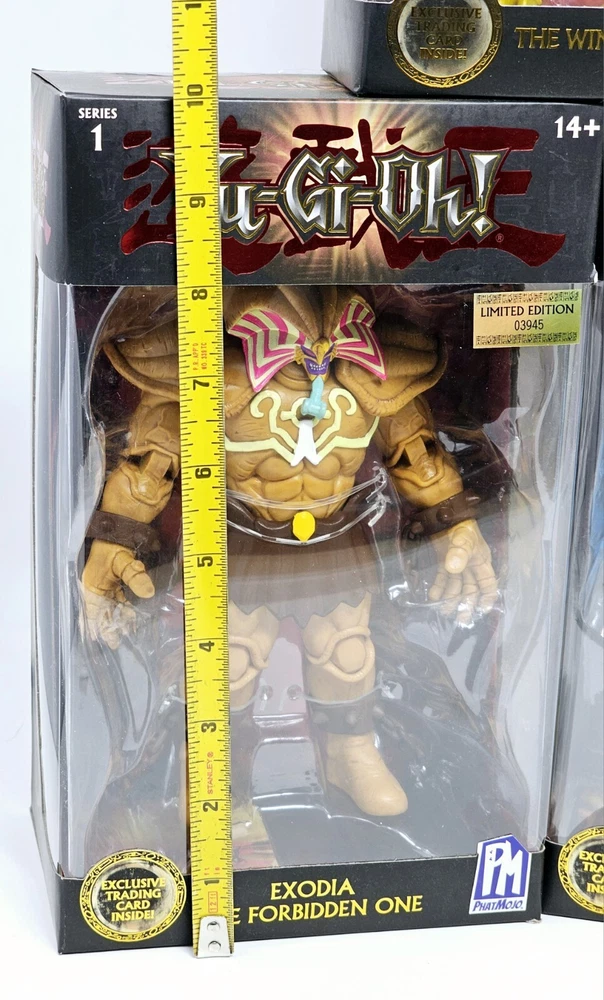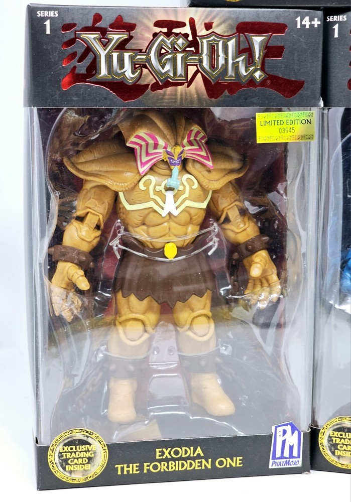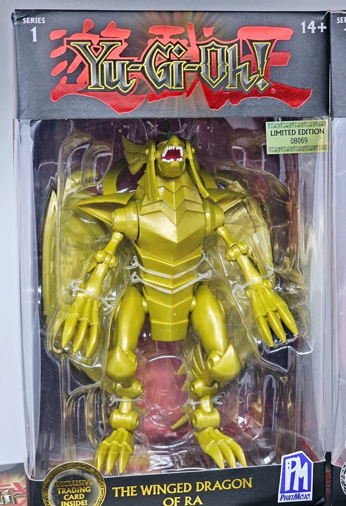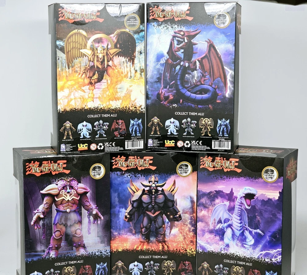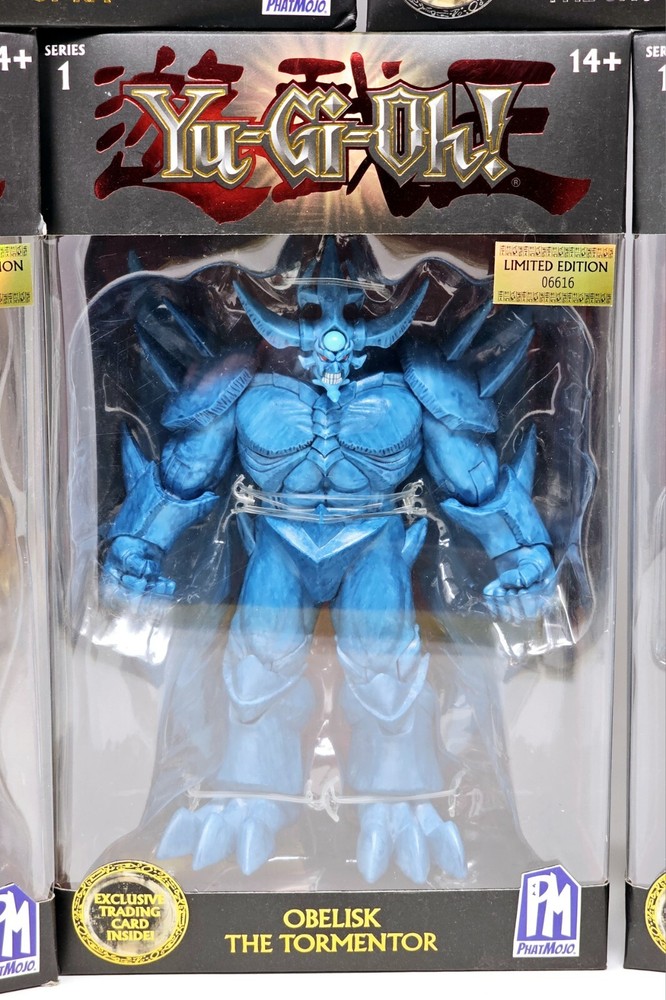 Boxes in VG condition, usual shelfwear. Worst I seen was a small tear on one corner of Slifer's box. Please review pictures before purchasing to better understand the condition of the items. The Yu-Gi-Oh! PhatMojo Series 1 Exodia Slifer Ra Obelisk Exclusive Cards Sealed Sets consist of 5 units of exclusive cards featuring iconic characters and creatures from the Yu-Gi-Oh! TV show and movie. The set includes characters like Obelisk the Tormentor, Blue Eyes White Dragon, The Winged Dragon of Ra, Slifer the Sky Dragon, and Exodia the Forbidden One, all standing at 7 inches tall. These cards are part of an anime and manga-themed collection manufactured in 2020 and are perfect for fans of the Yu-Gi-Oh! franchise looking to add unique and collectible items to their collection.