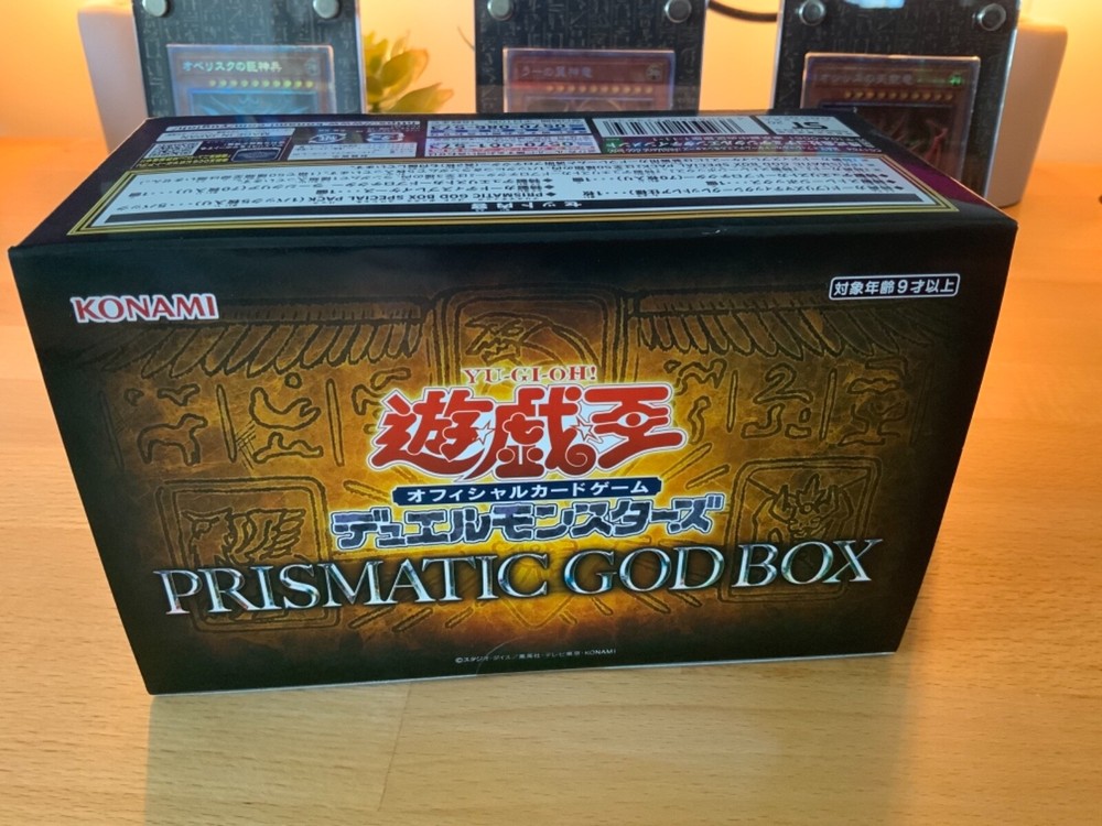 Yu-Gi-Oh! Prismatic God Box - PGB1 - OCG - New - Slifer - Ra - Obelisk - UK. Condition is "New". Japanese import. What’s in the box: - A prismatic secret rare god card (either Ra, Slifer, or Obelisk) - 5 Special packs in special foiling (card set includes Blue Eyes White Dragon, Dark Magician, Blue Eyes Ultimate Dragon and many more) - 70 God themed sleeves (either blue, yellow or red) - 70 clear over sleeves with a millennium border - A unique millennium display case (screw down) to showcase the Egyptian god card (or any other card) The second and third pictures are a sample only - box is new and sealed. This item has been imported to the UK so there are no further taxes / fees associated with this product (Customs / VAT has been paid). The price here is what you pay (no hidden fees).