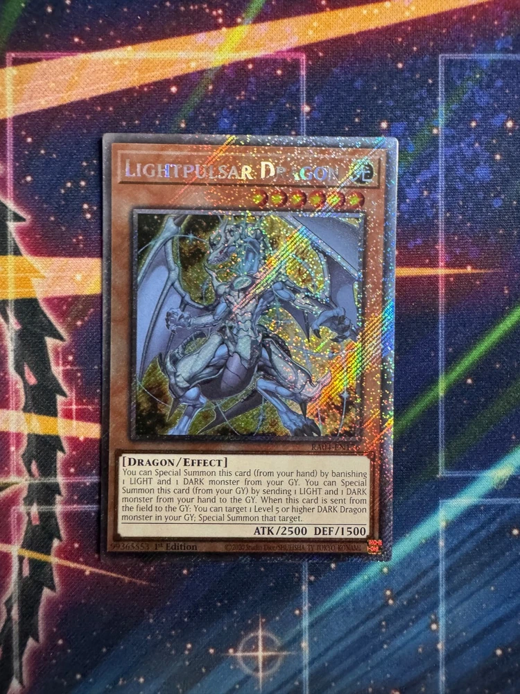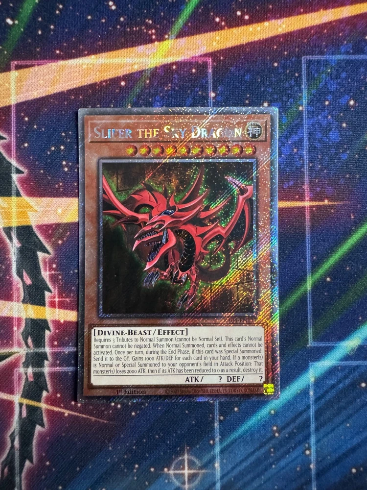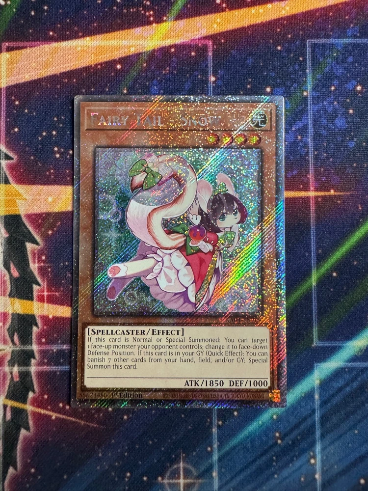This Yu-Gi-Oh! Quarter Century Stampede Platinum Secret Rare card is absolutely stunning! The artwork pops with incredible holographic detail, and the card arrived in flawless near-mint condition. The rarity makes it a must-have for serious collectors or duelists wanting to upgrade their deck. Very impressive quality—highly recommended for anyone who loves premium Yu-Gi-Oh! cards!