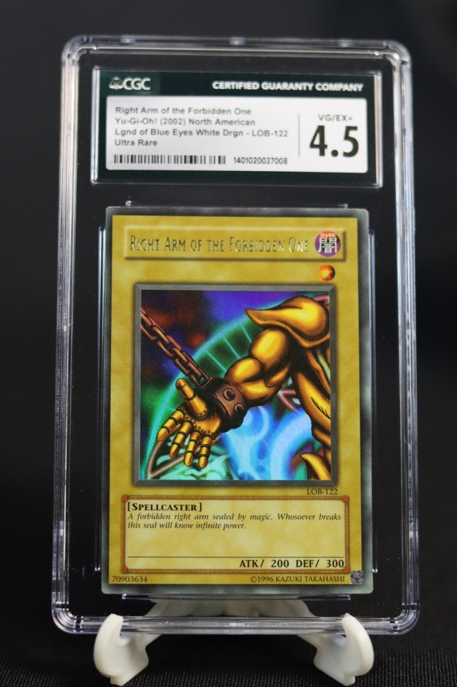 Elevate your Yu-Gi-Oh! collection with the formidable "Right Arm of the Forbidden One" card, a key piece from the iconic Legend of Blue Eyes White Dragon set. This Ultra Rare, Unlimited version of the card, numbered LOB-122, features the Holo finish that veteran and novice collectors alike desire, adding a gleaming touch to the Dark creature's depiction.With an attack power of 200 and a defense toughness of 300, this card stands ready to contribute to your strategic victories. Printed in English and originating from the United States, it's an essential addition for players over the age of 6. Whether you're engaging in a duel or enhancing your display, "Right Arm of the Forbidden One" is a must-have for enthusiasts of the Yu-Gi-Oh! universe. Shipped in protective sleeve.