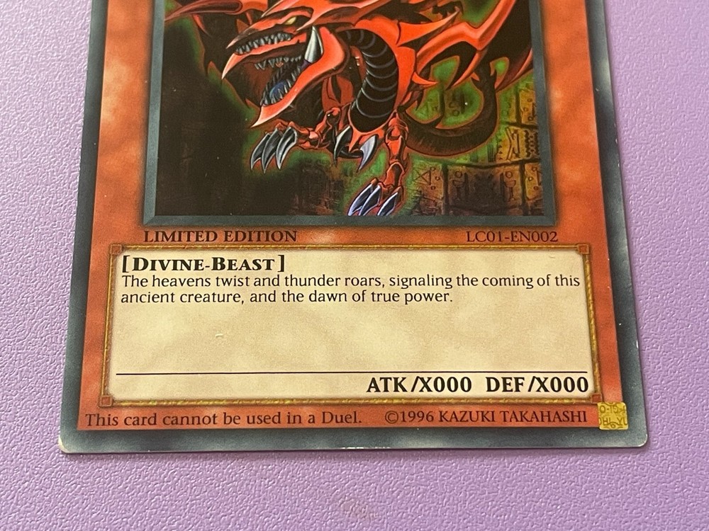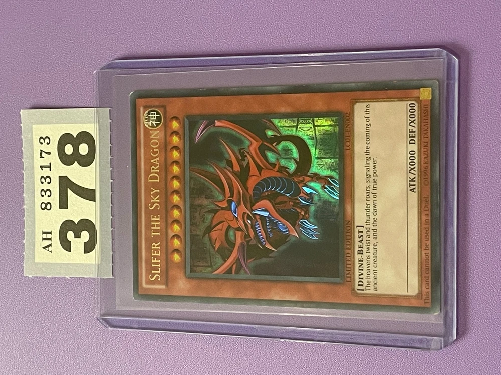 Hello and welcome to my auction. Yu-Gi-Oh! SLIFER THE SKY DRAGON LEGENDARY COLLECTION LC01-EN002 Limited Edition card. The card is in fair condition with some heavy marks and play. This card comes in a sleeve and protective Top Loader / case. Please check out the photos for detail of condition and any imperfections. Please check out my other YuGiOh! Cards and Collectable items as more are added regularly. All item/s are sold as seen, What you see is what you get I offer postage discounts on multiple wins If you have any questions please feel free to contact me and i will respond within 24 hours Payment within 3 days of auction ending please Items will usually be dispatched within 3 working days after receiving cleared payment. Many thanks and good luck