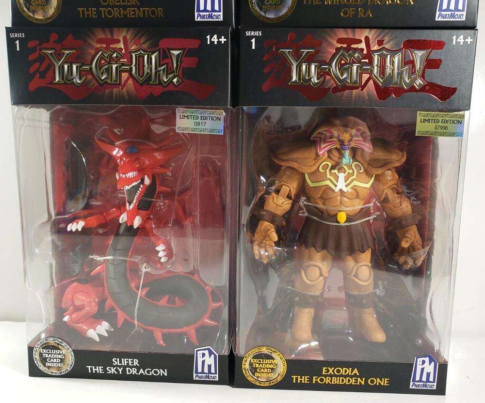 Yu-Gi-Oh Series 1 Limited Edition Figures Obelisk Exodia Slifer Winged Dragon Ra . Brand New - Factory Sealed Lot of 4 - PhatMojo Yu-Gi-Oh Series 1 Limited Edition Action Figures - Obelisk The Tormentor - The Winged Dragon of Ra - Slifer The Sky Dragon - Exodia The Forbidden One Buyer will receive the item pictured above. Payment must be paid within 5 days to avoid any delays. If payment is not received within 5 days of purchase, an "Unpaid Item Case" will be opened. Once payment has been received the item will be shipped on the next business day.
