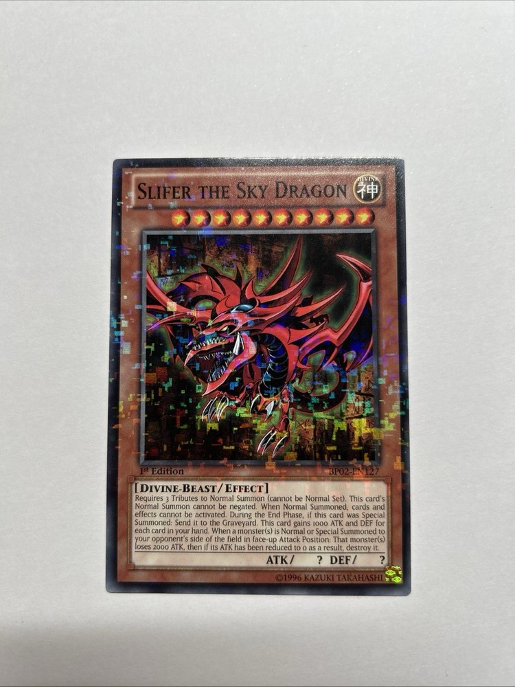 Tauchen Sie ein in die Welt des Yu-Gi-Oh! TCG mit der beeindruckenden Karte "Slifer The Sky Dragon" aus der Battle Pack 2: War of the Giants Edition. Diese Mosaic Rare-Karte, die Yugi Muto repräsentiert, ist ein Muss für jeden Sammler und Spieler. Die Karte zeichnet sich durch ihren beeindruckenden Holo-Oberflächeneffekt aus und gehört zur begehrten 1. Auflage, was sie zu einem wahren Sammlerstück macht. Mit der Kartenzustandsbewertung "Nahezu neuwertig oder besser" (Near Mint or Better) und der hochwertigen Verarbeitung aus Belgien steht diese Karte aus dem Jahr 2012 für Qualität und Beständigkeit. Ihr beeindruckendes göttliches Effektmonster im asiatischen Stil ist ein Highlight in jeder Sammlung und bereichert Ihr Spiel um strategische Tiefe.