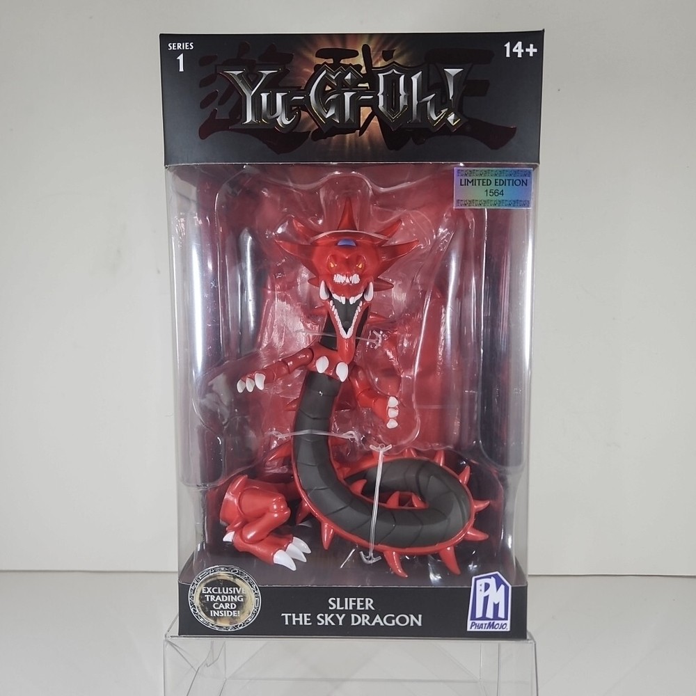 This figurine also comes with a EXCLUSIVE YUGIOH CARD inside the box! Will be shipped with care of course! This exclusive Yu-Gi-Oh! action figure of Slifer the Sky Dragon is a must-have for any fan or collector. Made by Phatmojo, this figure stands tall at [insert height] and features intricate details that truly capture the essence of the character. With its stunning design and high-quality construction, this figure is sure to impress. Whether you're displaying it on your shelf or adding it to your collection, this Phatmojo figure is a great addition to any Yu-Gi-Oh! collection.