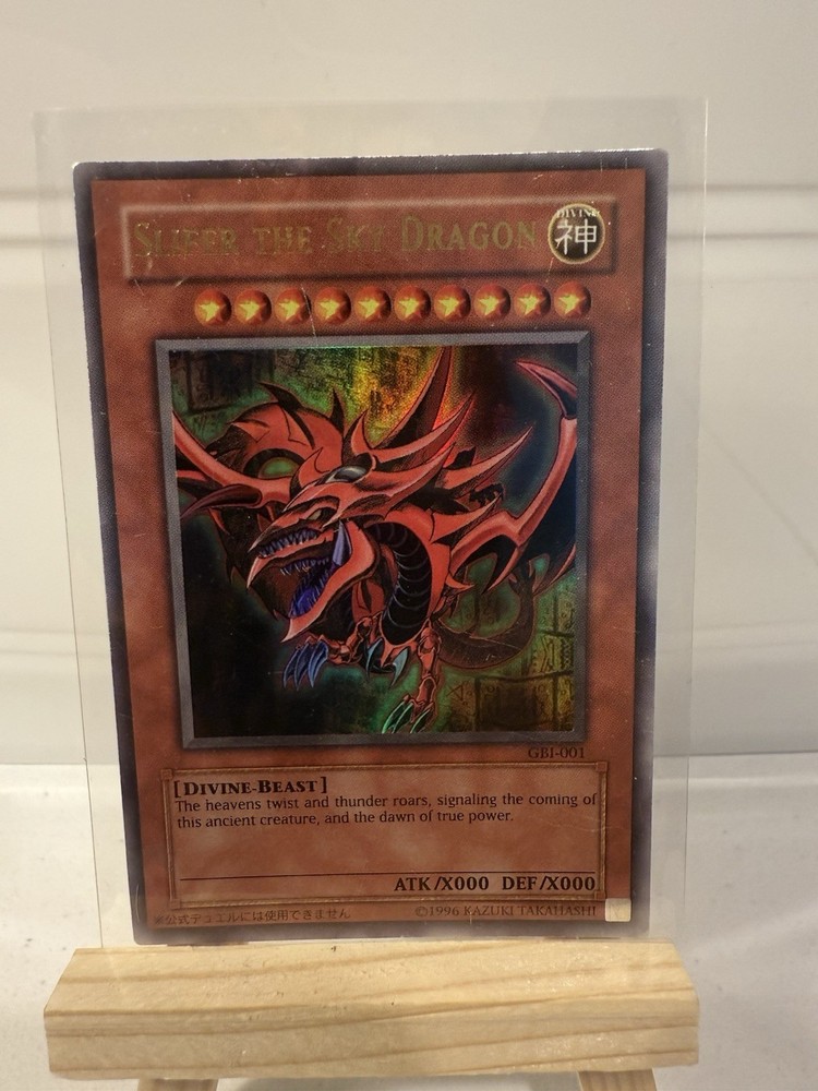 Up for sale is a Yu-Gi-Oh! TCG Slifer the Sky Dragon card, which is a Secret Rare Promo card from the - Yugi - set. This card is a Divine-Beast type Monster card with a Holo finish and was manufactured in 2003 by Konami. The card is in near mint condition and is in English. The card number is GBI-001 and it is a great addition to any collection.