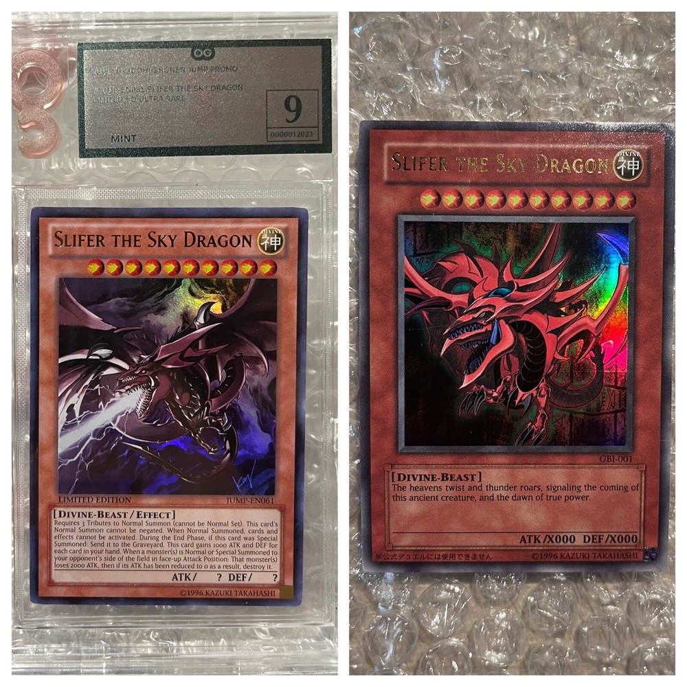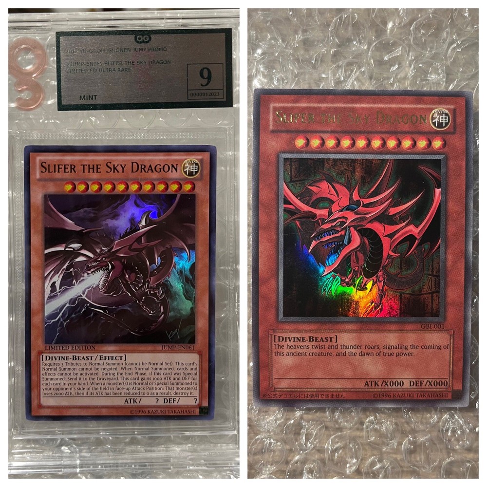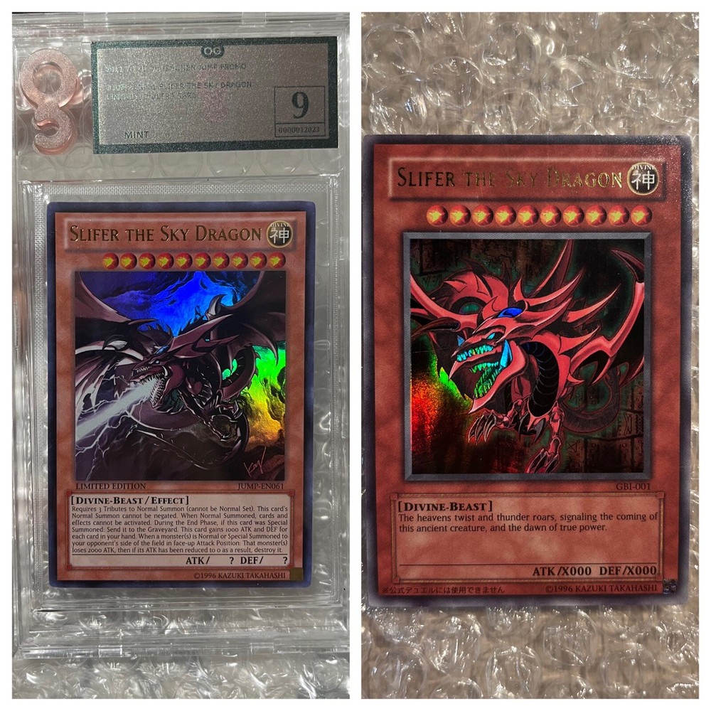 Yu-Gi-Oh! Slifer the Sky Dragon JUMP-EN061 2012 OG 9 & GBI-001 2000 EX. Ships securely. Feel free to contact us for more details or additional photos!...