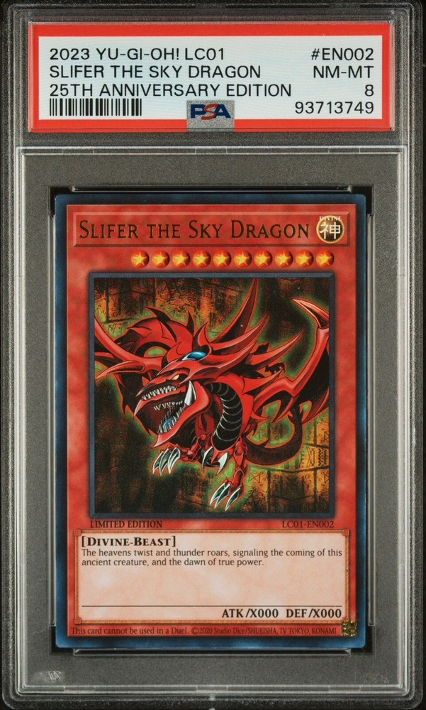 This Yu-Gi-Oh! TCG card is a must-have for collectors. The Slifer The Sky Dragon card is part of the Legendary Collection set and has been graded with a score of PSA 8. It's a great addition to any collection of CCG individual cards. The card name is well-known among Yu-Gi-Oh! enthusiasts and it's sure to impress. Don't miss out on the chance to own this rare and highly sought-after card.