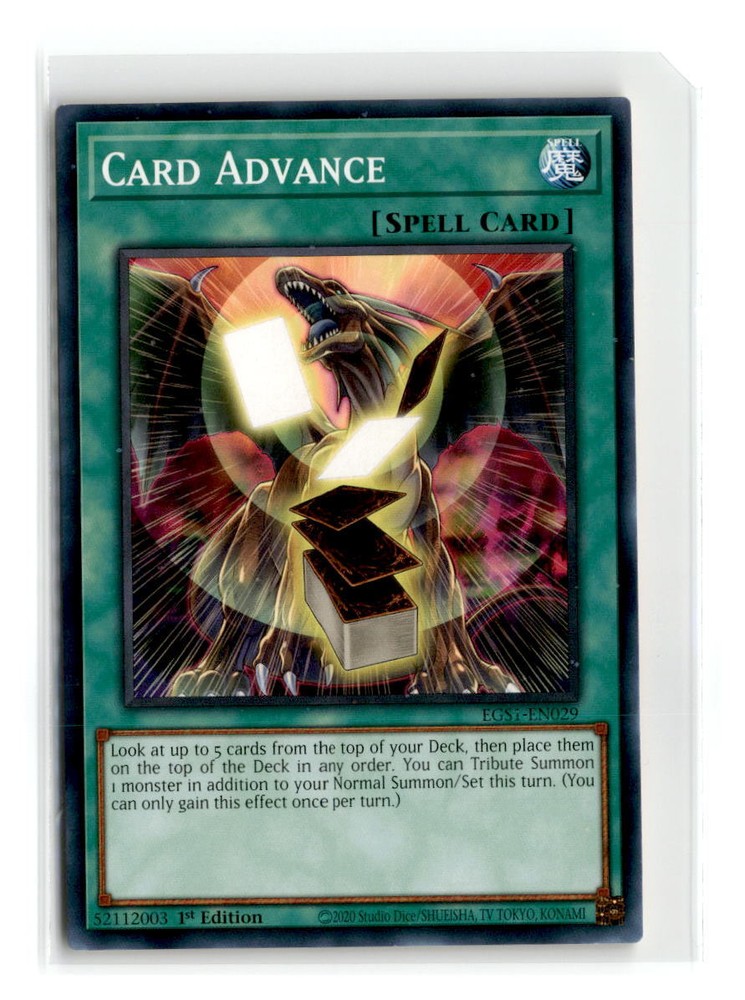 Dive into the strategic depths of the Yu-Gi-Oh! TCG with the Advance card from the Egyptian God Deck: Slifer the Sky Dragon. This Spell-Normal card, identified as EGS1-EN029, is a must-have for any duelist aiming to bolster their deck with powerful spellcaster abilities. Manufactured by Konami in 2020, it's a common/short print card that brings an edge to your gameplay.Card Advance, with its standard card size and regular finish, fits seamlessly into any existing collection. Designed for players aged 6 and up, this card is presented in English and crafted from durable card stock. Whether you're a seasoned player or just starting, this card is an essential addition to your Yu-Gi-Oh! TCG arsenal.