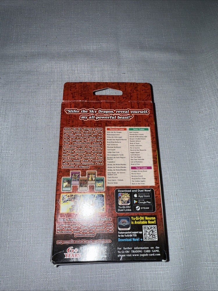 This Yu-Gi-Oh! TCG Egyptian God Deck features Slifer the Sky Dragon and is still sealed for your collection. The deck includes 40 standard-sized cards made of high-quality card stock and is suitable for ages 6 and up. As a 1st edition, this deck is a must-have for any Yu-Gi-Oh! TCG collector. The cards are in English and the deck comes in a configuration that is ready to play. The archetype of the deck is Dragon, and the set is Egyptian God Deck. This item is manufactured by Konami Digital Entertainment and is a perfect addition to your collection.