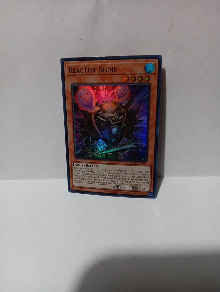 This fantastic Reactor Slime card is a must-have for all Yu-Gi-Oh! TCG fans. With its unique Aqua/Effect monster type and 500 defense/toughness, it is sure to make a great addition to your collection. This card features a Super Rare rarity and is a 1st edition, making it an even more valuable find. Part of the Egyptian God Deck: Slifer the Sky Dragon set, this card is numbered Egs1-En020 and is in near mint or better condition (ungraded). It is perfect for players and collectors alike who want to enhance their gameplay or display their collection. Don't miss out on the opportunity to own this amazing card!