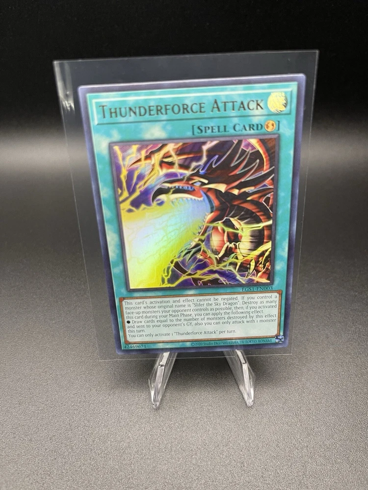 Entire lot (11 cards) of super rare Yu-Gi-Oh! TCG cards pulled from various Egyptian God boxes: Thunderforce Attack - EGS1-EN003 - Holo Reactor Slime - EGS1-EN20 -Holo Tellus The Little Angel - EGS1-EN006 - Holo Ultimate Divine-Beast - EGS1-EN004 - Holo Millennium Seeker - EGS1-EN005 - Holo Soul Crossing - EGS1-EN002 - Holo Harpie’s Feather Duster - EGS1-EN022 - Holo Penguin Soldier - RP01-EN089 - Holo Sangan - RP01-EN036 - Holo Chow Sai The Ghost Stopper - DIFO-EN093 -Holo Slifer The Sky Dragon - EGS1-EN001 -Holo When purchased I’ll also include various common cards as a bonus!