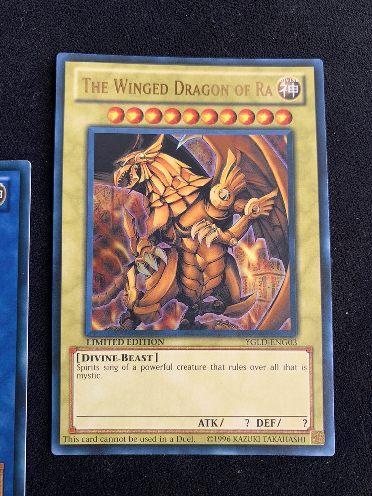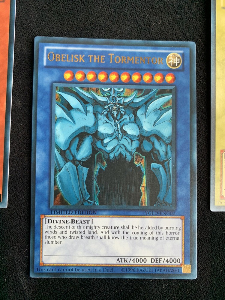 All 3 God Yugioh Monsters - the most powerful Monsters of all Time!! Slifer the Sky Dragon-YGLD-ENG01-NM/M Obelisk The Tormentor -YGLD-ENG02 -NM The Winged Dragon of Ra- YGLD-ENG03 -NM/M