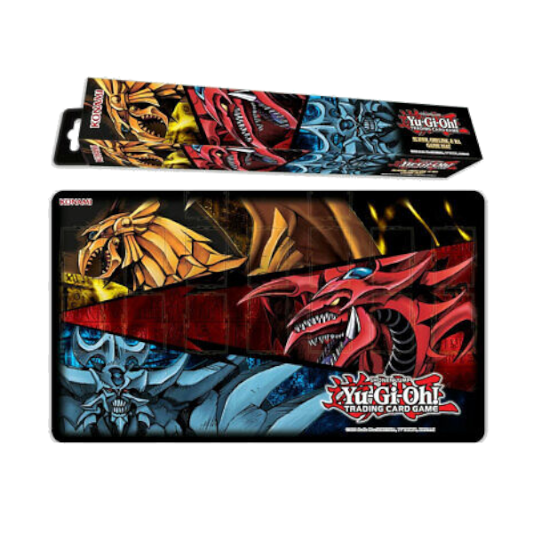 FACTORY SEALED - FREE SHIPPING Master the power that was lost millennia ago with the legendary Egyptian Gods! Slifer the Sky Dragon, Obelisk the Tormentor, and The Winged Dragon of Ra return in unparalleled glory with their artwork united on the June 2021 Game Mat!This full-sized, rubber Game Mat is the same size (24" X 14") as Game Mats used as prizing in various Konami sanctioned events, so it is perfect to Duel your way to the top. Made with high-quality materials, your Dueling experience will be as smooth as possible!
