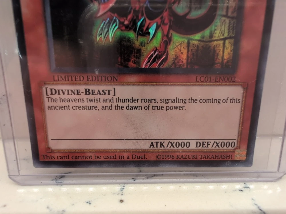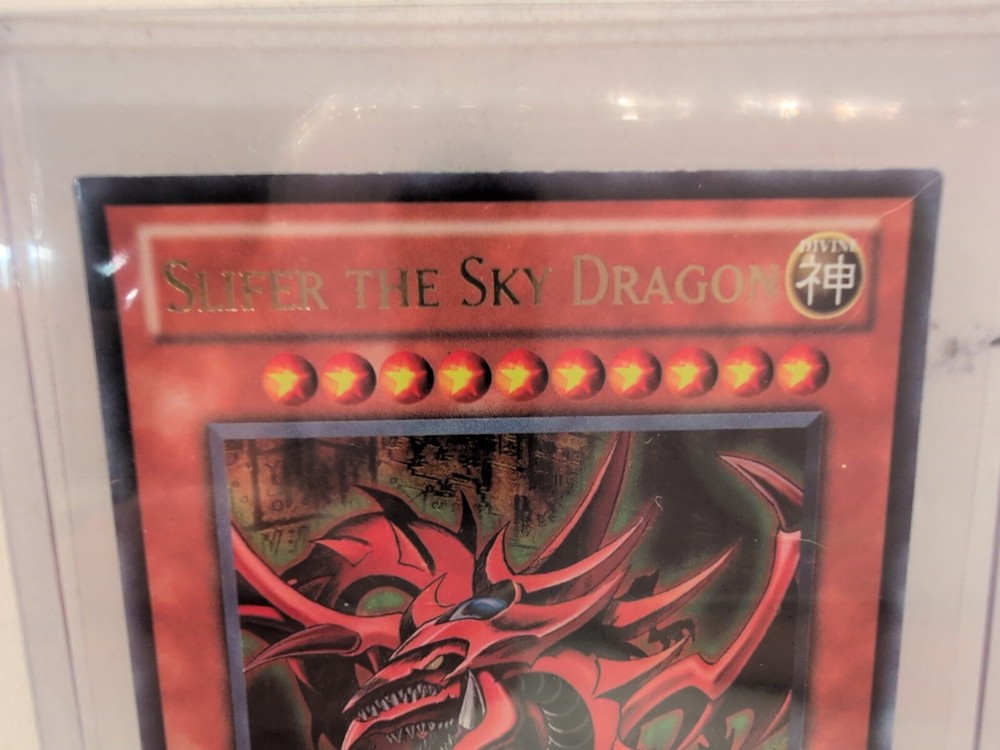 This Slifer The Sky Dragon Secret Rare is a fantastic addition to any Yu-Gi-Oh! fan's collection. The artwork is stunning, and even though it shows some playwear, the card still holds its value and appeal. A must-have for serious collectors or duelists looking to add a powerful and iconic monster to their deck. The rarity makes it stand out, and it's a great find for fans of the classic Yugi set.