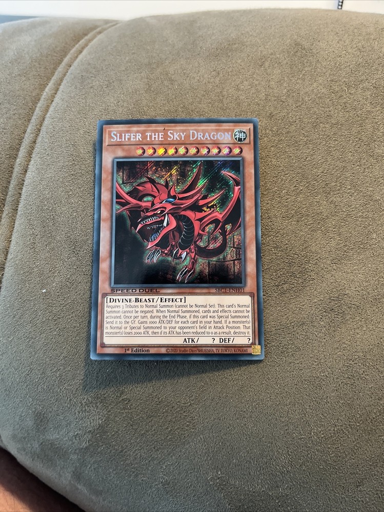 Yu-Gi-Oh! TCG Slifer the Sky Dragon SECRET Rare SBC1-ENH01. Condition is Ungraded. Shipped with USPS Ground Advantage....