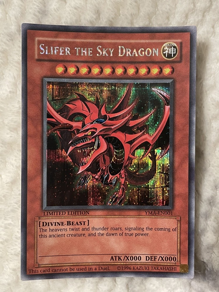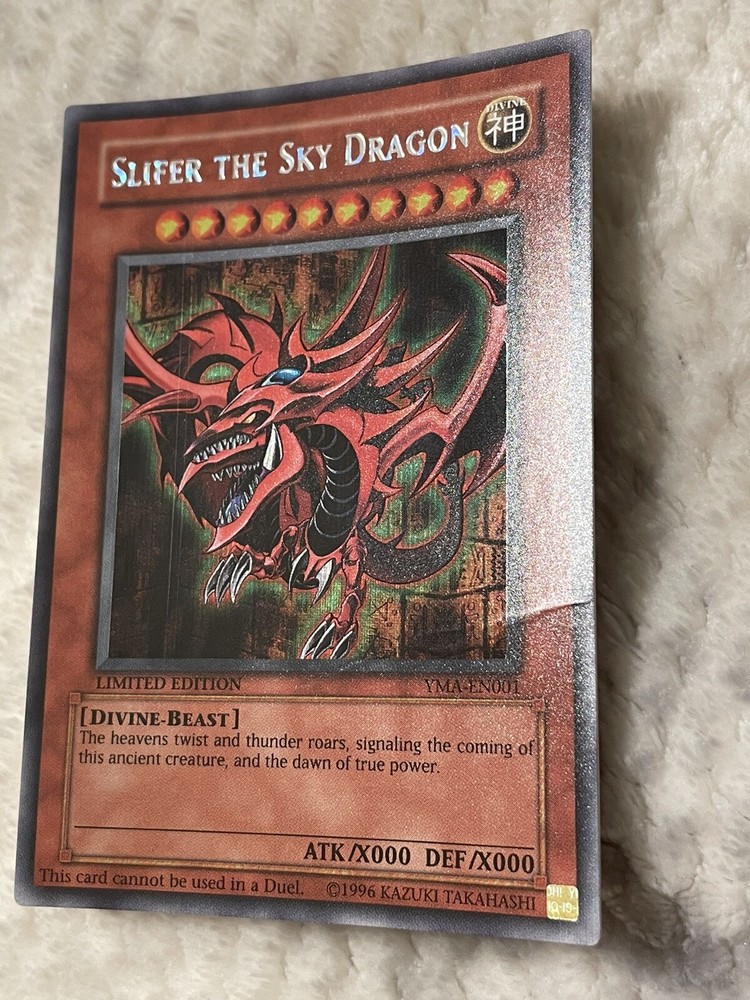 Yu-Gi-Oh! TCG Slifer the Sky Dragon YMA-EN001 Limited Edition. Card is lightly played. Card will be sent in a sleeve and top loader.