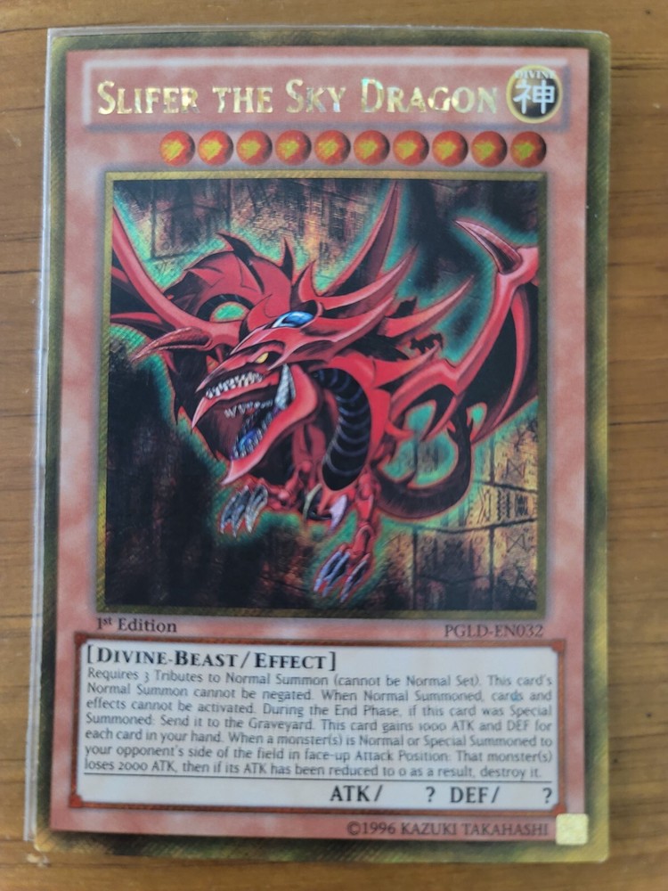 Unleash the power of Silfer The Sky Dragon with this Yu-Gi-Oh! TCG trading card from the - Yugi - set, model number PGLD-EN032. A must-have for any duelist, this card features the mighty creature/monster type of Sky Dragon, bringing a new dimension to your gameplay. As a 1st Edition release, it holds a special place for collectors and players alike, making it a standout addition to any deck or display.Whether you're looking to enhance your strategic arsenal or seeking to complete your collection with a touch of rarity and might, Silfer The Sky Dragon card is an exquisite find. With its iconic 'Dragons' card name, it resonates with the epic tales of the Yu-Gi-Oh! universe, ensuring it captures the imagination of enthusiasts and casual fans alike. This card has always been in a protective sleeve, aside from picturing for better viewing.