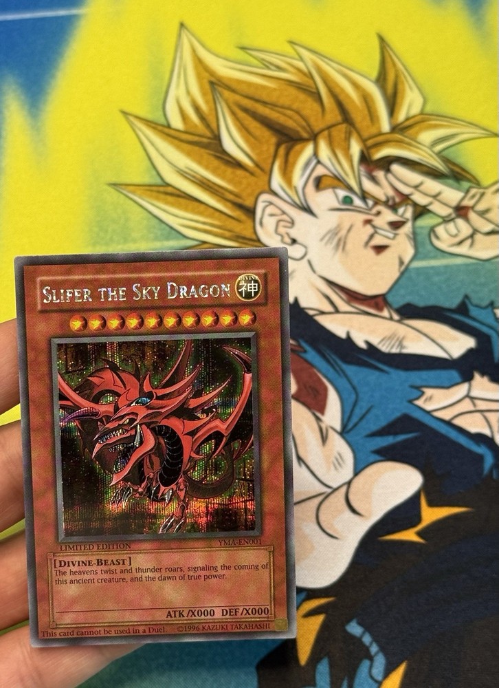 near mint vintage lot of all 3 prismatic secret rare egyptian god cards: Slifer The Sky Dragon (YMA-EN001), Obelisk The Tormentor (JMP-EN004) and The Winged Dragon of Ra (DOD-001) if you have any questions or would like additional pictures please feel free to reach out!