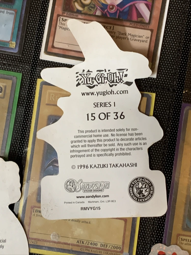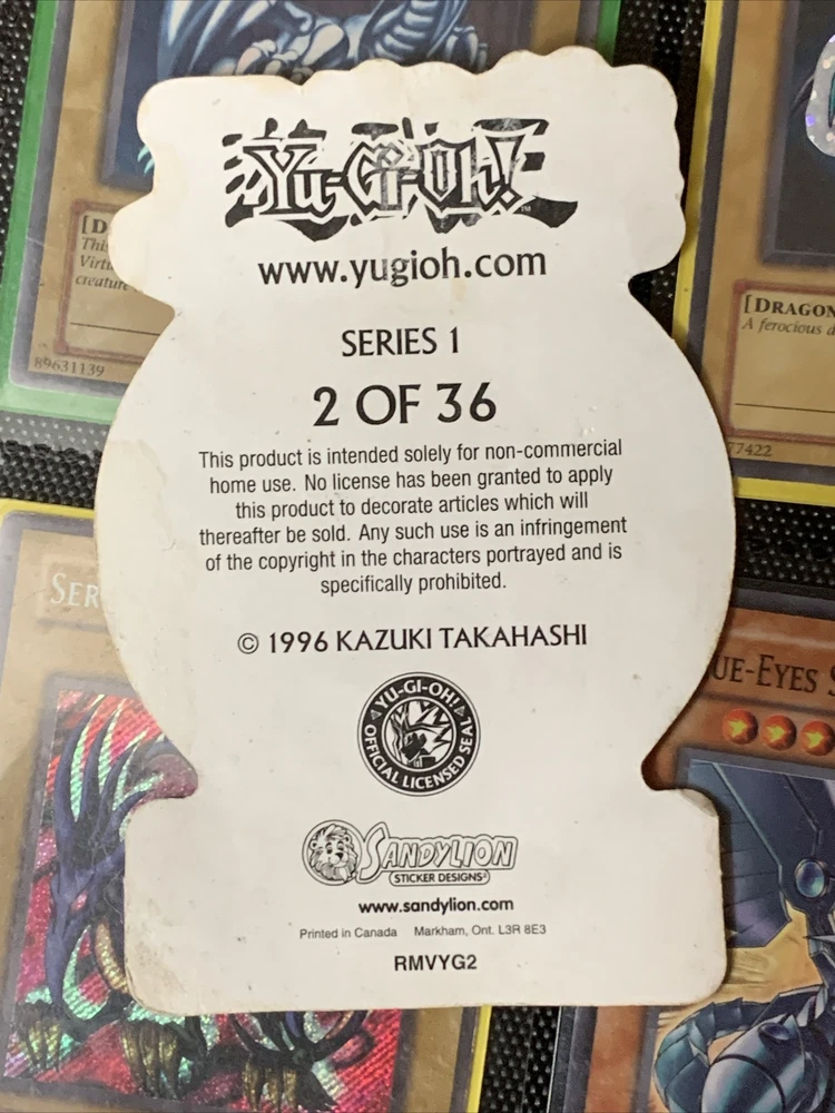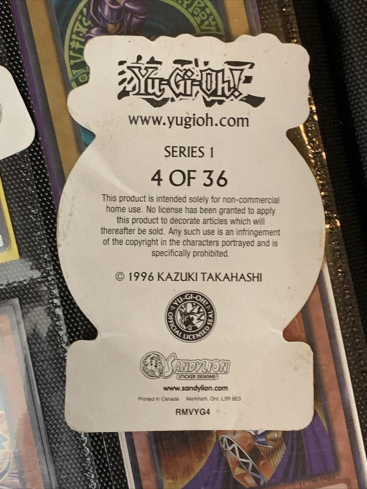 This Yu-Gi-Oh! Vintage Sandylion 1996 Sticker Exodia The Forbidden One+DM+BLS 2/36 card is a must-have for any collector or fan of the game. Featuring the iconic Exodia the Forbidden One and Yugi Muto characters, this 1st Edition monster card is made of high-quality paper with a holographic finish. The card is perfect for players aged 4 and above, and is part of the Yu-Gi-Oh! TCG game. With a card number of 2/36 15/36 4/36, this card is a rare find and a valuable addition to any collection. The card was manufactured in Canada and is in English language. Don't miss your chance to own this piece of Yu-Gi-Oh! history! Stickers of exodia the forbidden one, dark magician and black luster soldier holo stickers from 1996 Sandylion numbers are 2/36 4/36 15/36