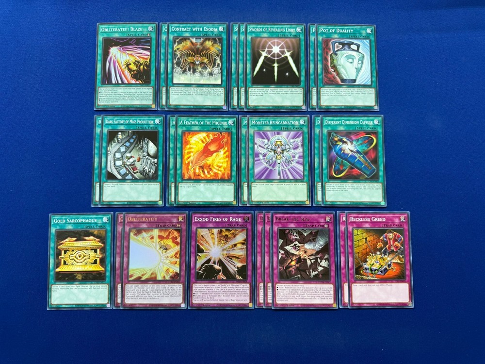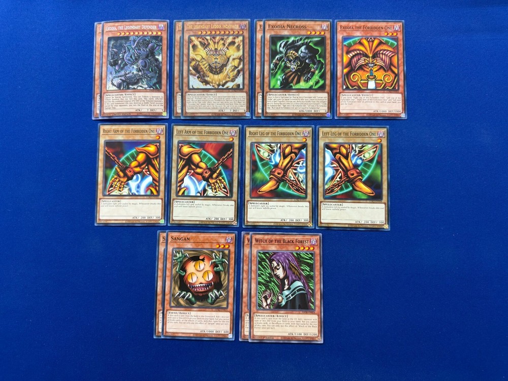 This deck was designed and tested to be ready to play! All cards are in near mint condition (Small chance of lightly played when older cards are involved). By purchasing this item you will recieve the following cards: Monster (x15): Exodia, the Legendary Defender (x2) - Secret Rare The Legendary Exodia Incarnate (x2) - Ultra Rare Exodia Necross (x2) - Common Exodia the Forbidden One (x1) - Common Left Arm of the Forbidden One (x1) - Common Left Leg of the Forbidden One (x1) - Common Right Arm of the Forbidden One (x1) - Common Right Leg of the Forbidden One (x1) - Common Witch of the Black Forest (x2) - Common Sangan (x2) - Common Spell (x17): Obliterate!!! Blaze (x1) - Super Rare Swords of Revealing Light (x3) - Common Contact with Exodia (x2) - Common Dark Factory of Mass Production (x2) - Common Monster Reincarnation (x2) - Common A Feather of the Phoenix (x2) - Common Pot of Duality (x2) - Common Different Dimension Capsule (x2) - Common Gold Sarcophagus (x1) - Common Trap (x8): Obliterate!!! (x2) - Ultra Rare Exxod Fires of Rage (x1) - Super Rare Break the Seal (x3) - Rare Reckless Greed (x2) - Common Shipping and Handling: Both Domestic and International Shipping are offered. All deck items are shipped via First Class Parcel Service (3-5 Days) and comes with tracking. Priority Mail Service (1-3 days) is also offered for Domestic buyers. Price is calculated based on the buyer's location. Payment: Payments are due within 3 days of ordering. Otherwise an Unpaid Item Case will be opened. If you have any questions or concerns, send a message and we'll answer as soon as we can! Please remember to leave feedbeck if you can, especially if you enjoy your purchase! Thank you for your patronage and support!