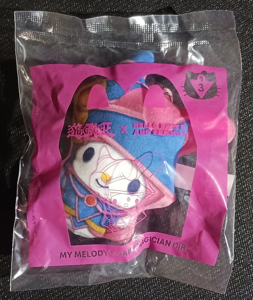 The product is a 2024 McDonald's Happy Meal toy plush featuring a collaboration between Yu-Gi-Oh and Hello Kitty. This limited edition collectible is a unique addition to both the world of fast food toys and the popular franchises. McDonald's fans and collectors alike will appreciate the opportunity to add this special toy to their collection, blending the worlds of fast food and entertainment.