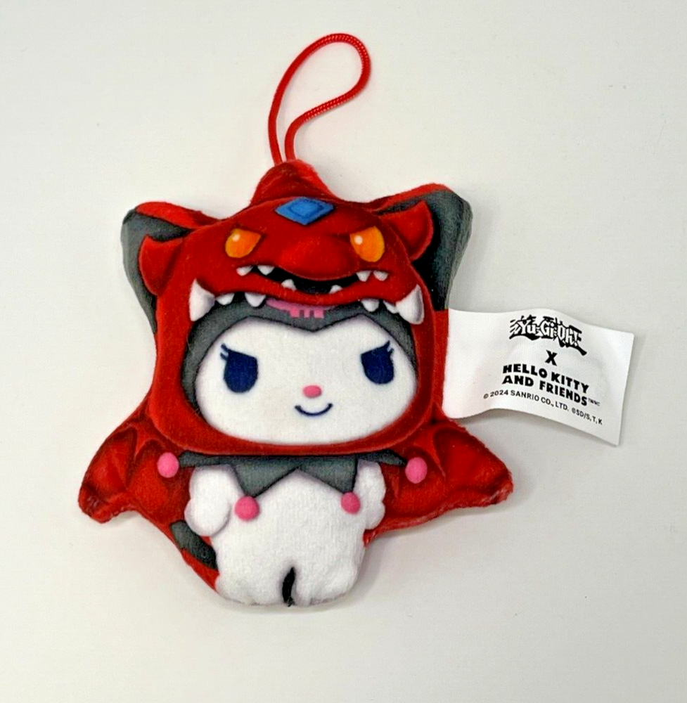 Dive into a world of cuteness and legendary duels with this exclusive Yu-Gi-Oh! x Hello Kitty and Friends mini plush! Featuring Kuromi dressed as the powerful Slifer The Sky Dragon, this adorable plush is a unique crossover that fans of both franchises will absolutely love. Features: Official Collaboration: This mini plush is an officially licensed product from the iconic Yu-Gi-Oh! and Hello Kitty and Friends collaboration. Unique Design: Kuromi takes on the form of Slifer The Sky Dragon, blending her mischievous charm with the fierce and legendary power of Slifer. The detailed design captures the essence of both characters perfectly. Compact Size: Measuring approximately 6 inches, this mini plush is perfect for displaying on your desk, shelf, or taking with you wherever you go. High-Quality Material: Made from soft and durable materials, this plush is perfect for hugging or collecting. Great Gift: Ideal for Yu-Gi-Oh! fans, Hello Kitty enthusiasts, or anyone who appreciates unique and cute collectibles. Add this rare Yu-Gi-Oh! x Hello Kitty and Friends Kuromi x Slifer The Sky Dragon Mini Plush to your collection today! Perfect for fans of all ages. Don’t miss out on this unique piece of cross-over magic!