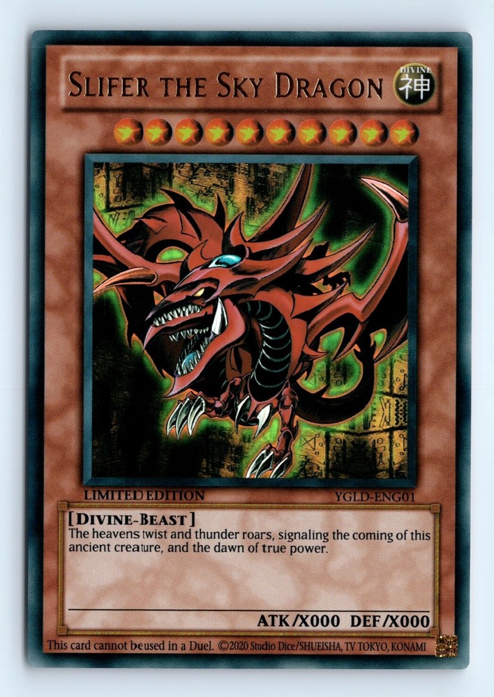Cards 20$ or Less in Price Will be shipped in a penny sleeve and in a top loader by Ebay standard envelope. Please check out the scans for a good look at the condition. This is a example of a King of Games: Yugi's Legendary Decks #YGLD-ENG01 Slifer the Sky Dragon .Other important information about this card: Ultra RareIn 0 Slifer the Sky Dragon played for the .Please check out our other listings for more great cards.