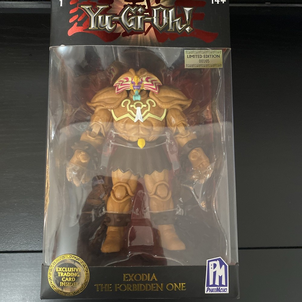This Exodia the Forbidden One action figure from the Yu-Gu-Oh! franchise is a must-have for any fan or collector. It comes with an exclusive card #00165 Low# that adds to its value. The figure is made by Phatmojo and is of high quality. The figure is perfect for display or play and is sure to impress any Yu-Gu-Oh! enthusiast. Its details are intricate and it stays true to the character's appearance. This action figure is a great addition to any collection and is sure to be a prized possession for years to come.