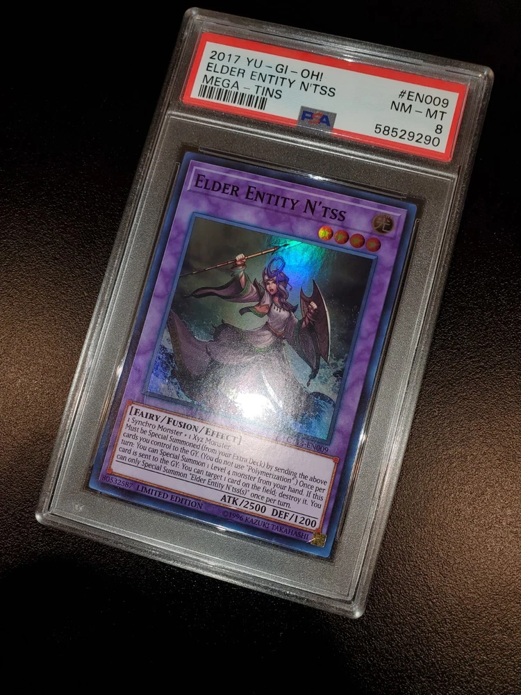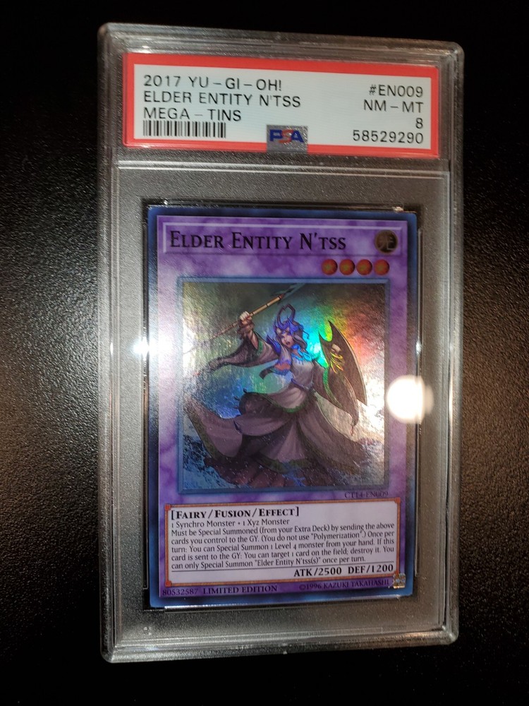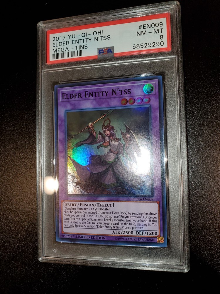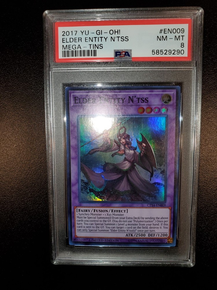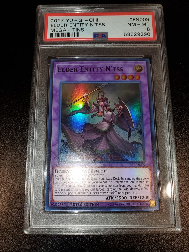 Yugioh 2017 Elder Entity N'tss Limited Ed. CT14-EN009 PSA 8 Will ship safely & securely. Slab is fitted tight and firmly in a perfect fit plastic sleeve. Placed in small 4x6 bubble mailer that will be sandwiched in between 2 large cuts of cardboard. Further encased in a larger brighter 6x10 bubble mailer to ensure perfect protection during shipment and to retain visibility to USPS workers reducing the possibility of missing packages. As a long time seller on eBay, I want every order placed with me to arrive timely and safely. You are entrusting me with your hard earned money and I will not only meet, but surpass your trusted expectations. Feel free to message for further pictures or questions