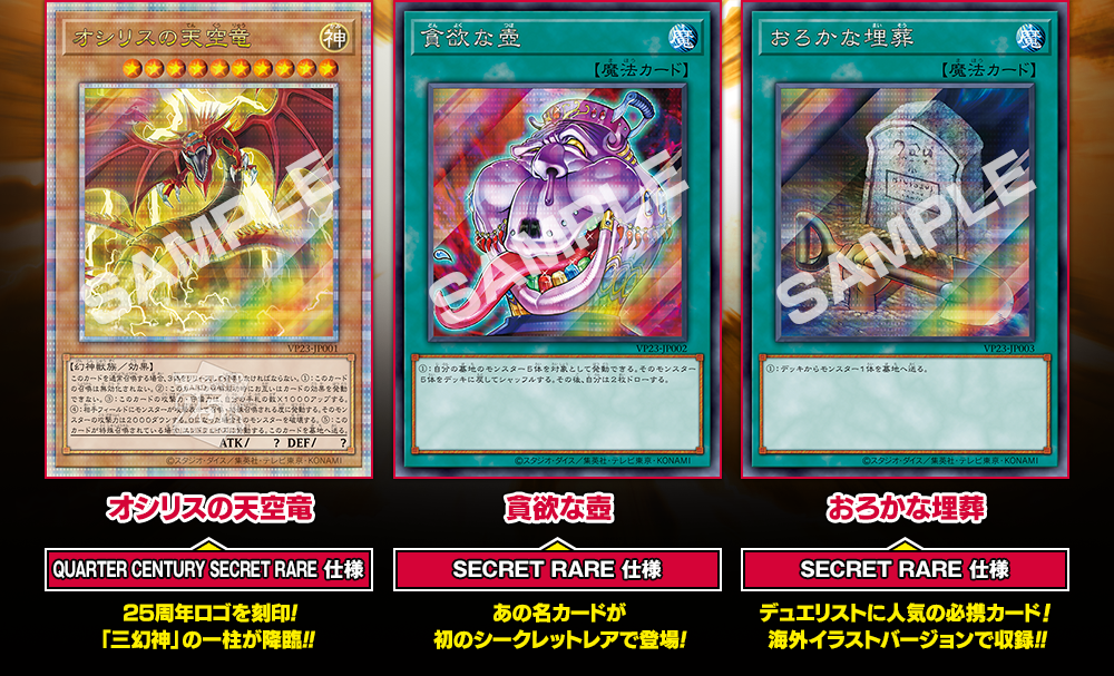 Yugioh 25th Quarter Century Duel Set Winged Dragon of Ra Slifer the Sky Dragon Description Contents [Quarter Century Duel Set] ①OCG card Winged Dragon of Ra (Quarter Century Secret Rare) ②Winged Dragon of Ra Duel field ③Winged Dragon of Ra Commemorative medal [Quarter Century Anniversary Selection] ①OCG card Slifer the Sky Dragon (Quarter Century Secret Rare) ②OCG card Pot of Avarice (Secret Rare) ③OCG card Foolish Burial (Secret Rare) Condition New Shipping We always send the item with a tracking number. So please place an order without any concern on delivery. You can always track the delivery status. Shipping is only available to the address registered in eBay. If you want us to send another address, please change your address on eBay and then place an order. Shipping is available from Monday to Friday. Weekends are not available because freight companies are closed. About Importer's Obligation Import duties, taxes, and charges are not included in the item price or shipping cost. These charges are the buyer's responsibility. Please check with your country's customs office to determine what these additional costs will be prior to bidding or buying. Thank you for your understanding.