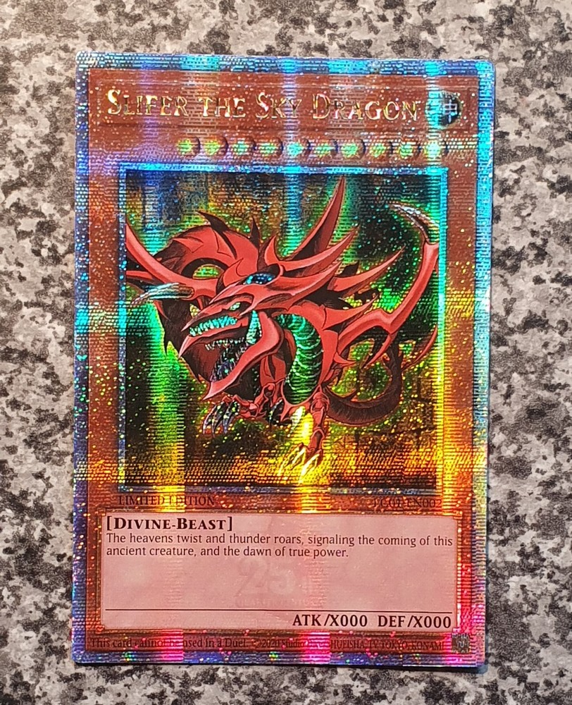 MISPRINT QCSE ATTRIBUTE ERROR instead of English DIVINE is Portuguese DIVINO LC01-EN002 Slifer the Sky Dragon Quarter Century Secret Rare Limited Edition Legendary Collection: 25th Anniversary Edition Condition: MINT see original pictures