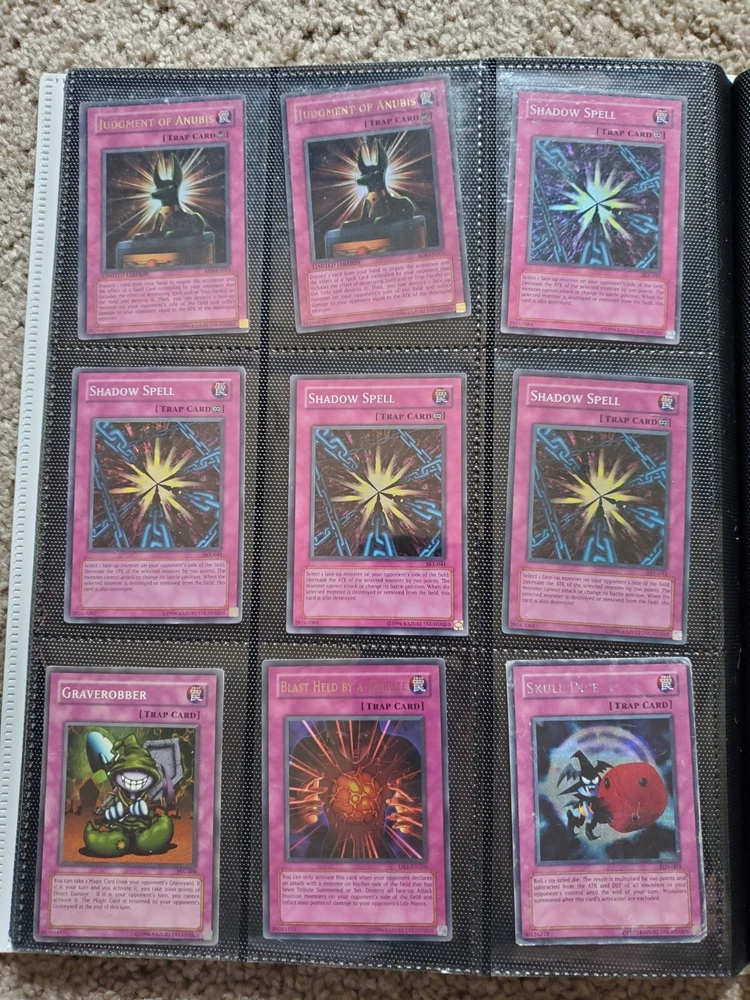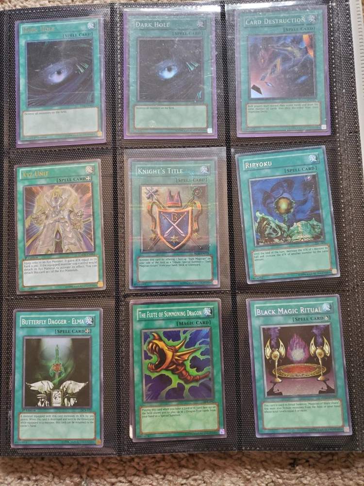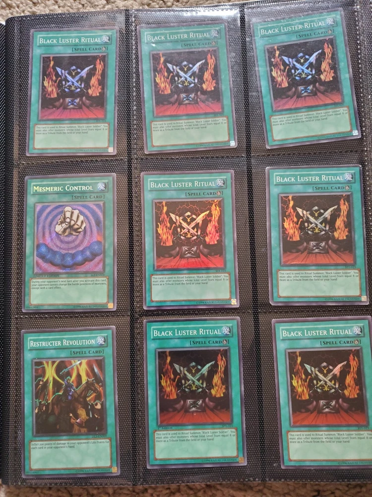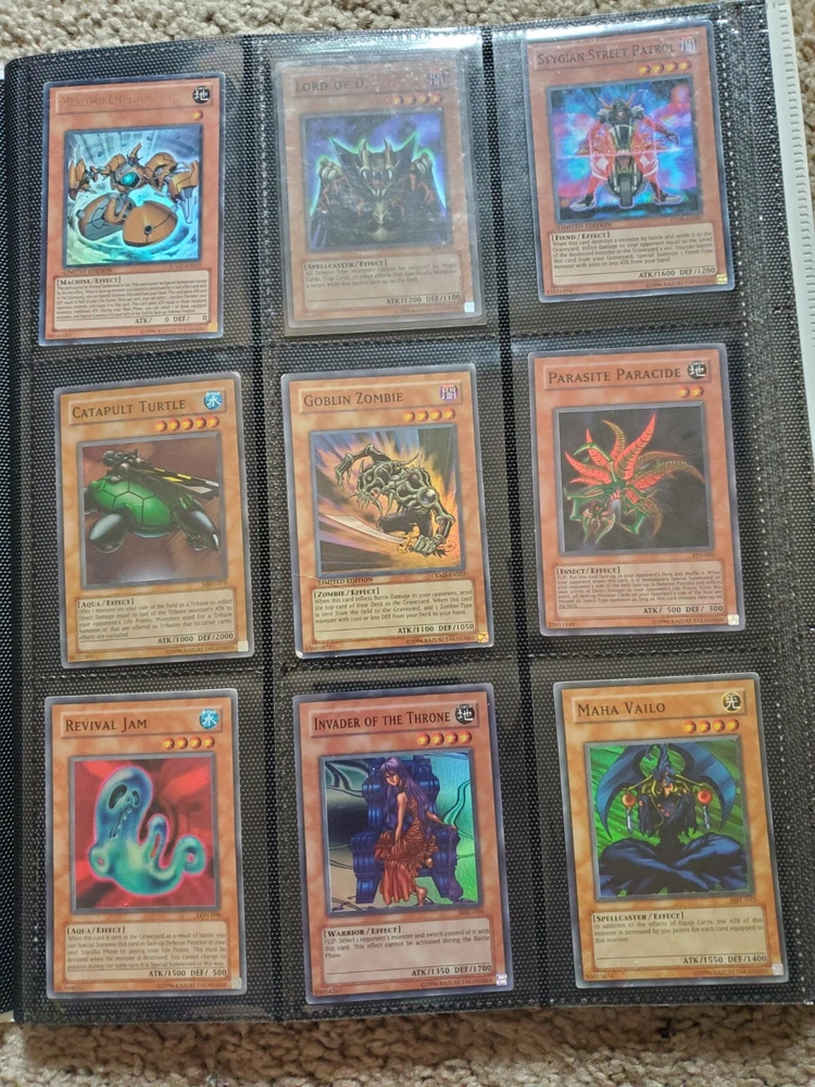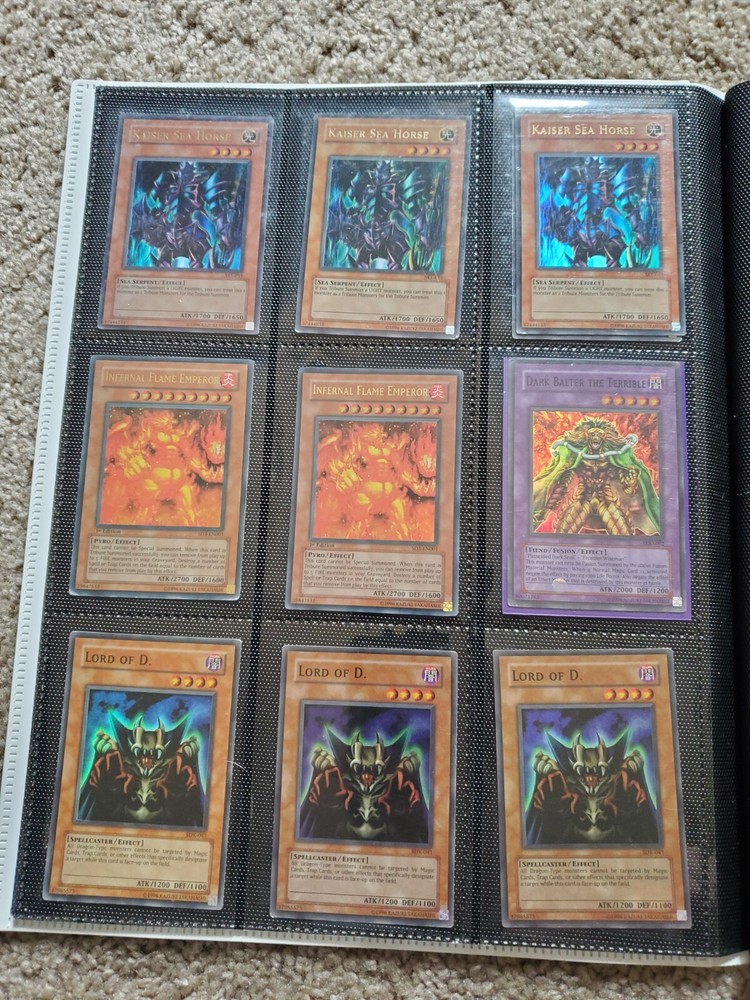 Yu-Gi-Oh binder collection, Includes vintage and some modern. Binder is included. Many Super Rares / Ultra Rares / Some Secret Rares 1st Editions / Unlimited / Limited Editions Some cards are Exodia, Blue-Eyes White Dragon, Dark Magician, Black Luster Soldier, Buster Blader, Flame Swordsman, Slifer the Sky Dragon, Winged Dragon of Ra, Obelisk the Tormentor, Conditions are mixed. Please bid in mind of mixed conditions. Sold as is