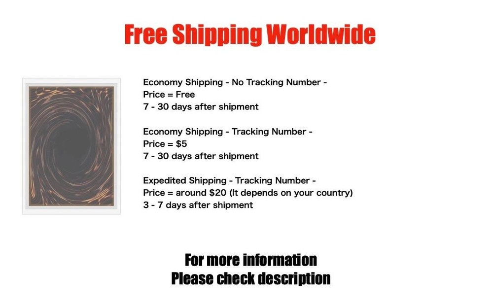 Yugioh Cards | Slifer the Sky Dragon Quarter Century Secret Rare | QCCU-JP200 Ja C ondition Near Mint to Excellent Yugioh Cards Check our Yugioh cards here. D iscounts!!! Buy more than 2 cards in my store, Save 3 - 5% off for each cards. Yugioh Cards Check our Yugioh cards here. Discounts are applied automatically by simply adding the product to your cart! If the discount is not applied automatically due to eBay's system error, please inform us of the "Discount Error" in the message after purchasing the item. We will manually apply the discount based on the number of items purchased. S hipping We usually ship within 3 - 5 business days of receiving cleared payment. Economy Shipping - No Tracking Number - It takes 7 - 30 days after shipment. Expedited Shipping - Tracking Number - It takes 3 - 10 days after shipment. If you buy more than 2 cards and choose Expedited Shipping, please select Expedited Shipping for just 1 item. We will ship the items in one package. P ayment We can be contacted at any time through eBay messages if you have any questions, comments or product requests. We will respond to you within 24 hours and do our best to help you out! We encourage our customers to contact us with any questions or concerns! We'd like to be sure you are completely satisfied with your purchase. We do not mark merchandise values below value or mark items as gifts. US and International government regulations prohibit such behavior. I nternational Buyers - Please Note Import duties, taxes, and charges are not included in the item price or shipping cost. These charges are the buyers responsibility. Please check with your country's customs office to determine what these additional costs will be prior to bidding or buying.