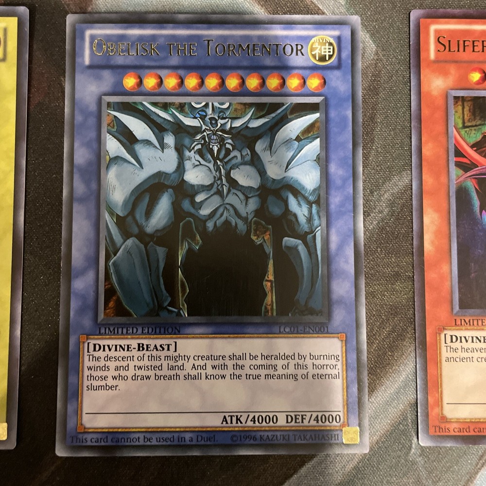 Yugioh! Dragon of Ra, Obelisk, Slifer LC01 3-Card Egyptian God Set NM. Fast shipping...