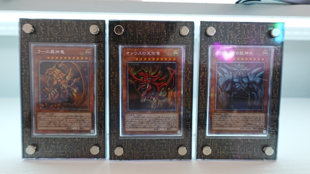 These legendary Divine-Beast cards are pure nostalgia! Slifer, Obelisk, and Ra look stunning with their Japanese foil finish, and even with minor slab wear, the cards themselves are in fantastic condition. Perfect for collectors or duelists wanting iconic Yu-Gi-Oh! power—feels like holding a piece of the anime's magic. Super rare and totally worth it!