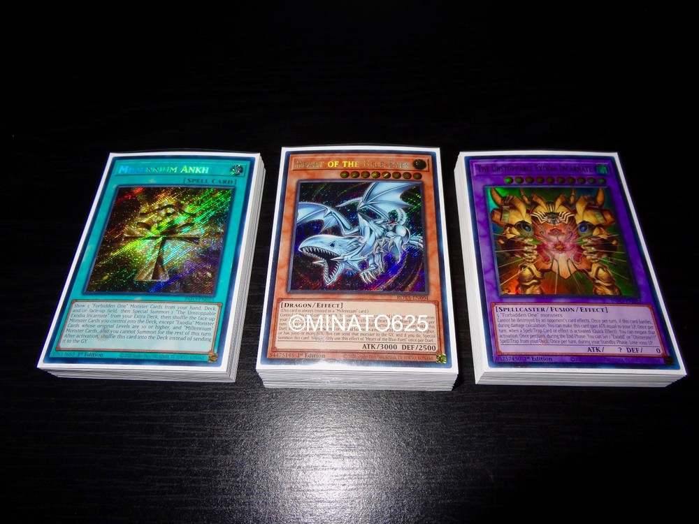 - Item for sale is a Complete 40 Card Exodia Deck - Ultra Pro sleeves + deck box included - Please leave a checkout note or message me your color choices (randomly chosen otherwise) 40 CARD EXODIA DECK: Extra Deck Cards (15): 3x The Unstoppable Exodia Incarnate (Starlight Rare) 1x Accesscode Talker (Ultra Rare) 1x Underworld Goddess of the Closed World (Secret Rare) 1x Selene, Queen of the Master Magicians (Ultra Rare) 1x Dharc the Dark Charmer, Gloomy (Ultra Rare) 1x Lyna the Light Charmer, Lustrous (Ultra Rare) 1x Aussa the Earth Charmer, Immovable (Ultra Rare) 1x Hiita the Fire Charmer, Ablaze (Ultra Rare) 1x Knightmare Unicorn (Ultra Rare) 1x Knightmare Phoenix (Ultra Rare) 1x Donner, Dagger Fur Hire (Rare) 1x Barricadeborg Blocker 1x Sorcerer of Sebek Monster Cards (24): 1x Exodia the Forbidden One 1x Left Arm of the Forbidden One 1x Right Arm of the Forbidden One 1x Left Leg of the Forbidden One 1x Right Leg of the Forbidden One 3x Heart of the Blue-Eyes (Starlight Rare) 3x Sengenjin Wakes from a Millennium (Secret Rare) 3x Shield of the Millennium Dynasty (Secret Rare) 3x Golem that Guards the Millennium Treasures 3x Ghost Sister & Spooky Dogwood (Ultra Rare) 1x Dimension Shifter (Ultra Rare) 3x Lava Golem (Super Rare) Spell Cards (13): 3x Millennium Ankh (Starlight Rare) 3x Wedju Temple (Secret Rare) 3x Grief Tablet (Super Rare) 1x Obliterate!!! Blaze (Super Rare) 1x Secret Village of the Spellcasters 1x Terraforming (Ultra Rare) 1x Set Rotation (Ultra Rare) Trap Cards (3): 2x Exxod Fires of Rage (Super Rare) 1x There can be Only One Shipping - I am ready to bring your cards to you as soon as possible and will ship your order off within 1 day of purchase. All orders will be shipped with bubble mailer and a protective case. Purchases made on Saturday and Sunday will be shipped off the following Monday. - All orders will be shipped with Free First Class Shipping (3-5 days) + Tracking! - Priority Mail (1-3 days) and Priority Mail Express (1-2 days) are available as well, shipping price will vary depending on your destination. Payment - Please pay within 3 days of purchasing your item(s) to avoid an Unpaid Item case. This just helps me run things smoothly for other bidders/buyers and myself. Will appreciate if you please leave feedback when you receive your item, and I will leave feedback as well. Contact me if anything is wrong with your order so I can have a chance to fix the issue- Your satisfaction is most important! Thank You! - If you have any questions please do not hesitate to contact me and I will respond as soon as possible. Thank you for taking a look. Have a Great Day!